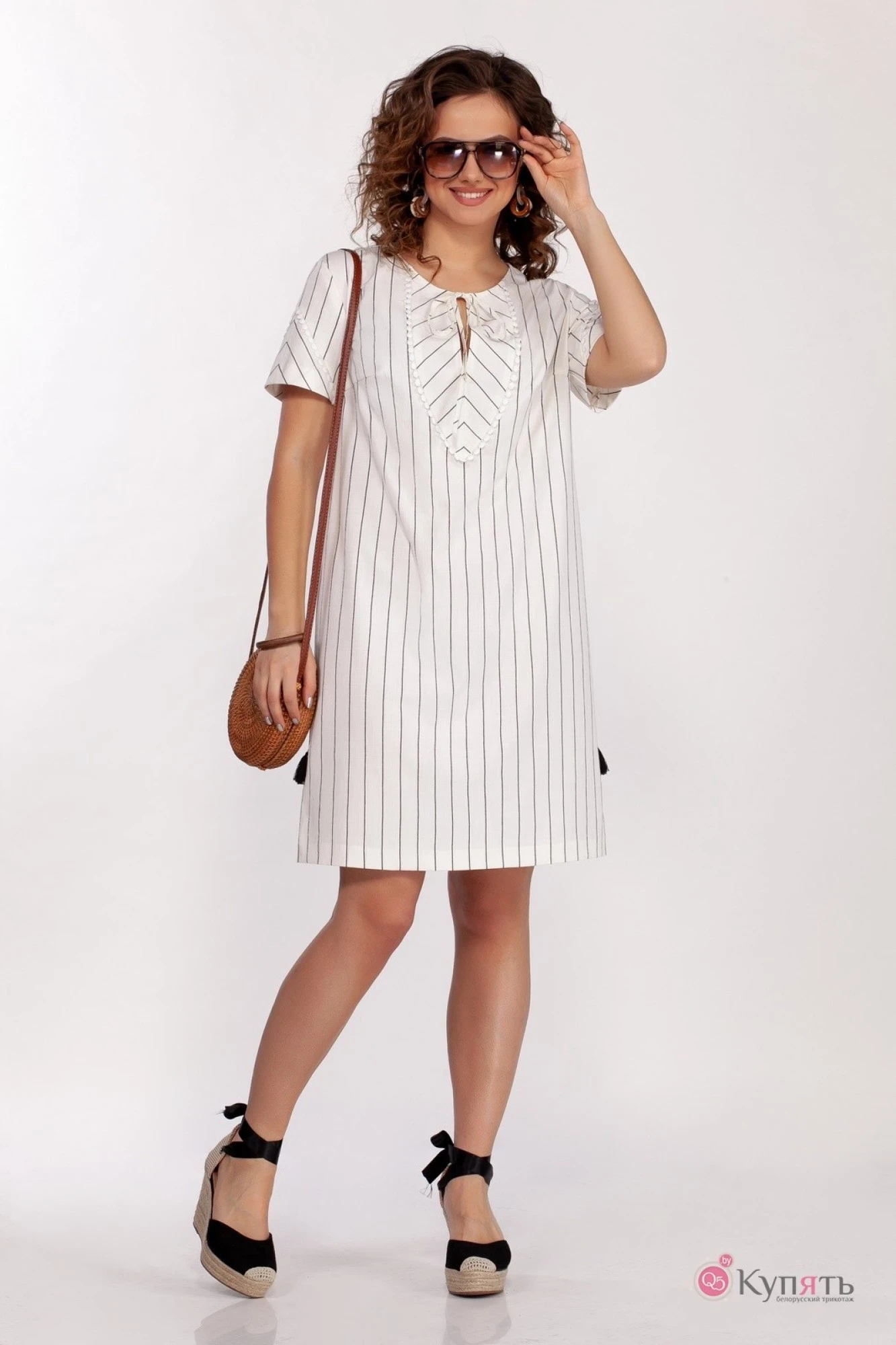 46,48,50,52,54,56Спинка без конструктивных особенностей. Перед с нагрудными вытачками из бокового шва, фигурной отделочной деталью, выкроенной в другом направлении полоски. Между передом и отделочной деталью вставлена декоративная тесьма. По центру горловины обработан разрез – капля. Вырез горловины округлый, обработан окантовкой переходящей в завязки. Рукава втачные, рубашечной формы, с отделочными деталями выкроенными в другом направлении полоски. Между деталями рукава вставлена отделочная тесьма. По низу платья обработаны разрезы и пришиты декоративные кисточки.