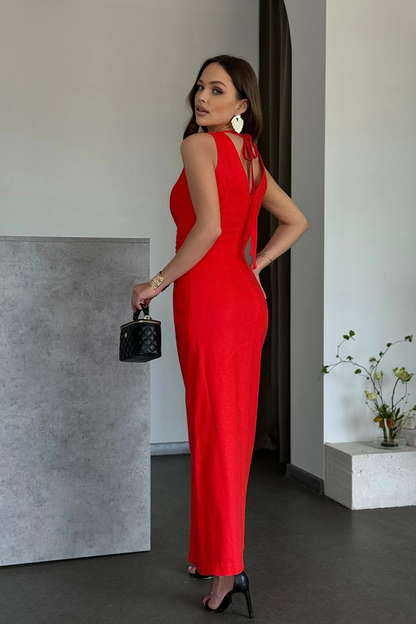 46,48,50, 52 ,54Спинка со средним швом и талиевыми вытачками. Вырез «горловины - «лодочка». По спинке вырез горловины «V-образный», с завязками вверху горловины спинки.
