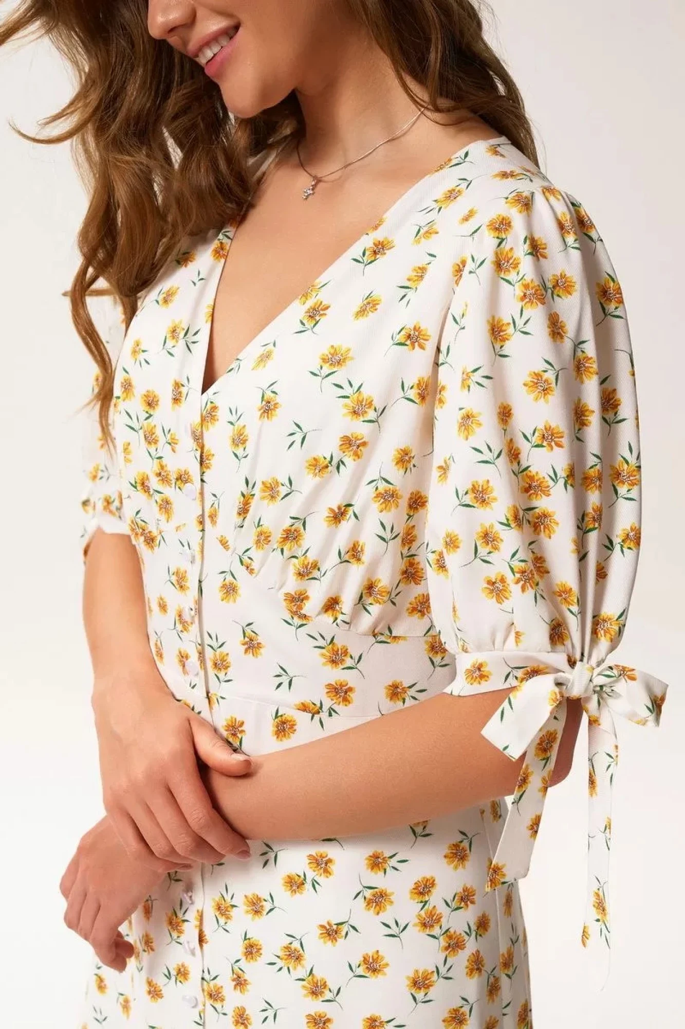 Женское платье KaVaRi 1042 Молоко принт ромашка
