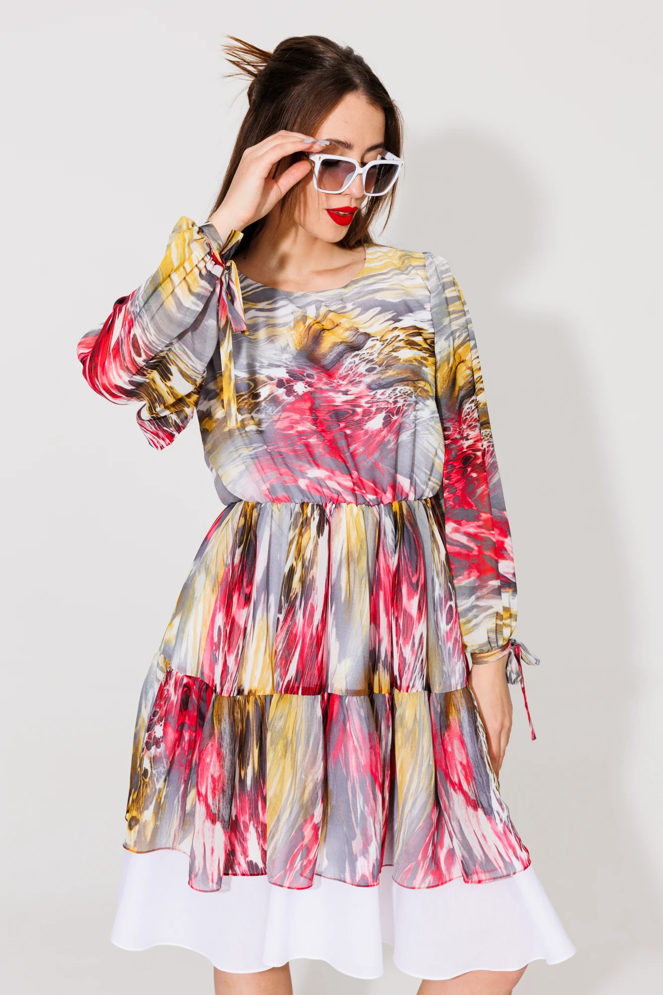 Платье NikVa н536 красно-жёлтые разводы