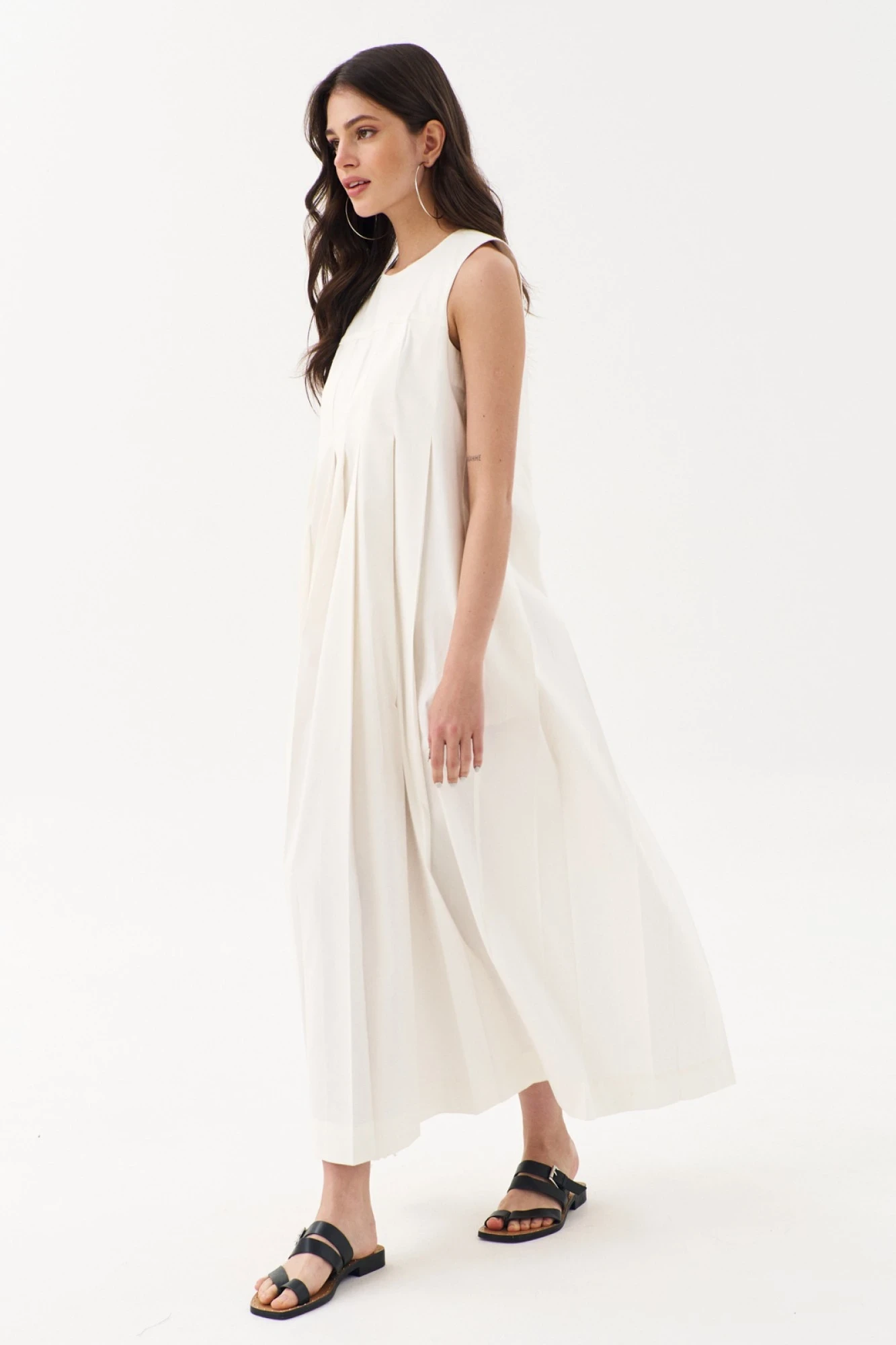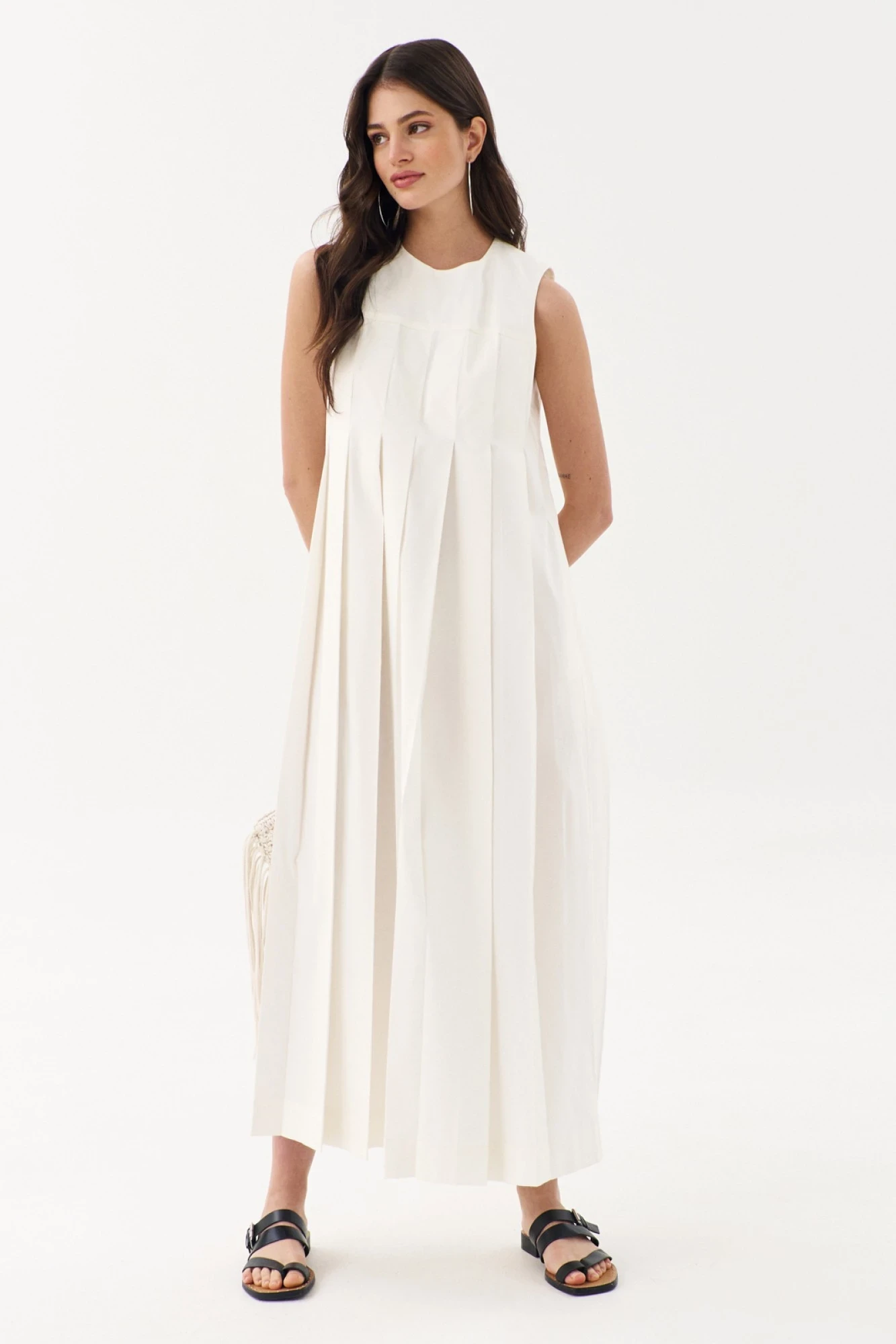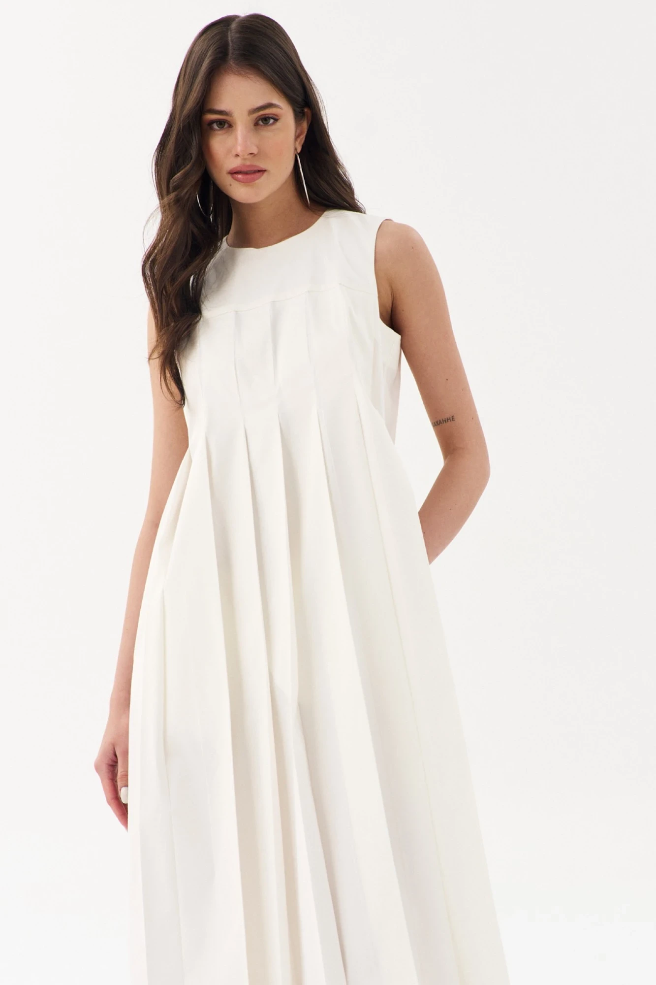 •по переду и спинке притачные кокетки и декоративные складки •по спинке застежка на молнию •в боковых швах карманы •длина макси"