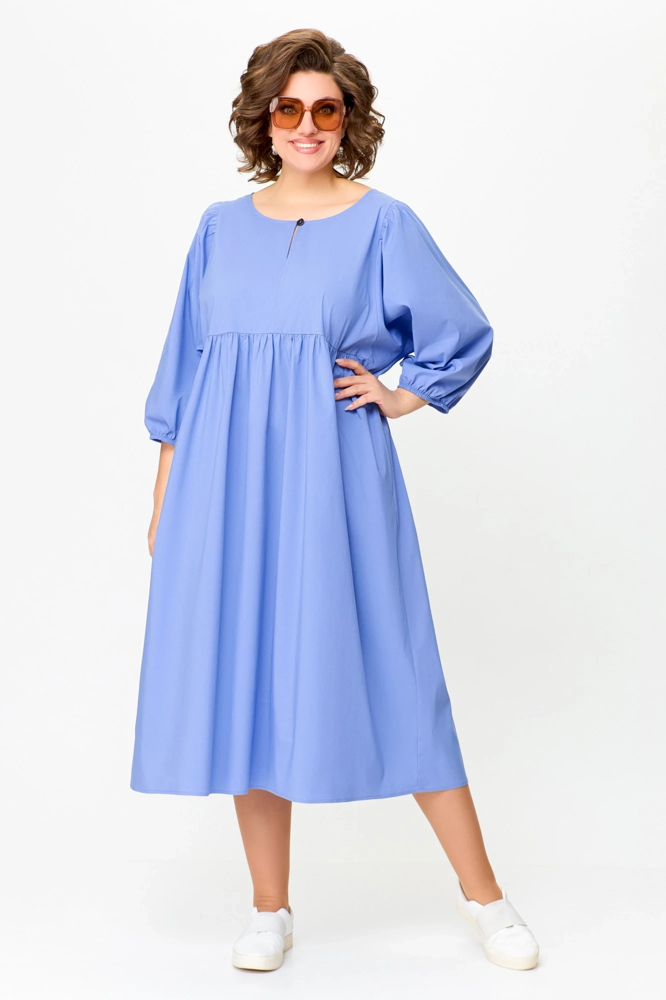 Платье отрезное по линии талии. Перед лифа со средним швом и разрезом с застёжкой по горловине на навесную петлю и декоративную пуговицу. Юбка со сборкой по линии талии и карманами в боковых швах. По низу юбки пришита фирменная эмблема «SWАLLOW». Рукав цельнокроеный, отрезной по линии проймы, со сборкой по окату. Низ рукава собран на эластичную тесьму.