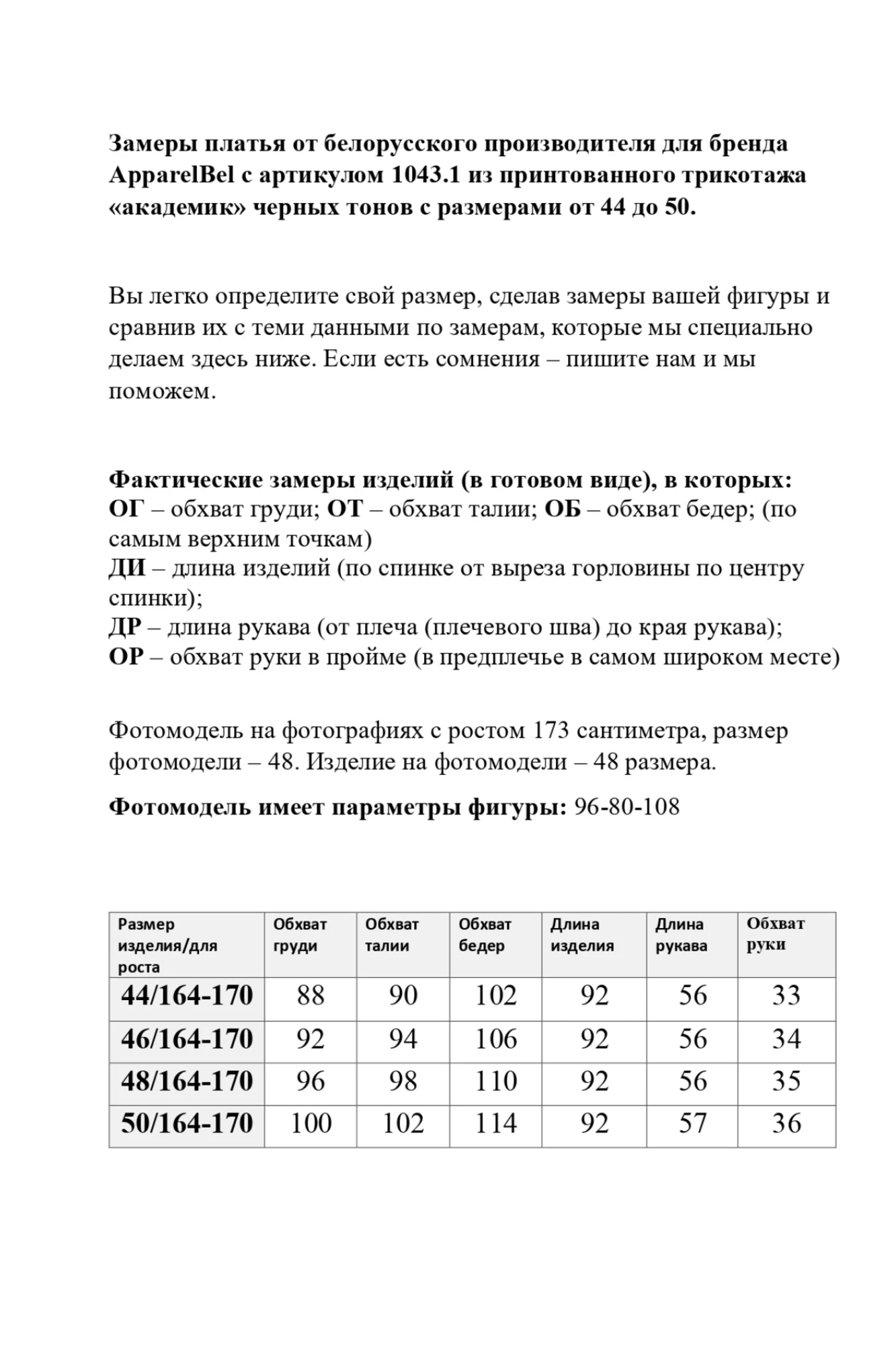 Наша фотомодель ростом 173 см., демонстрирует платье 48 размера, что поможет вам лучше представить, как она будет выглядеть на вас. Если у вас есть сомнения по выбору размера, обращаться к нам — мы с радостью поможем подобрать идеальный вариант!