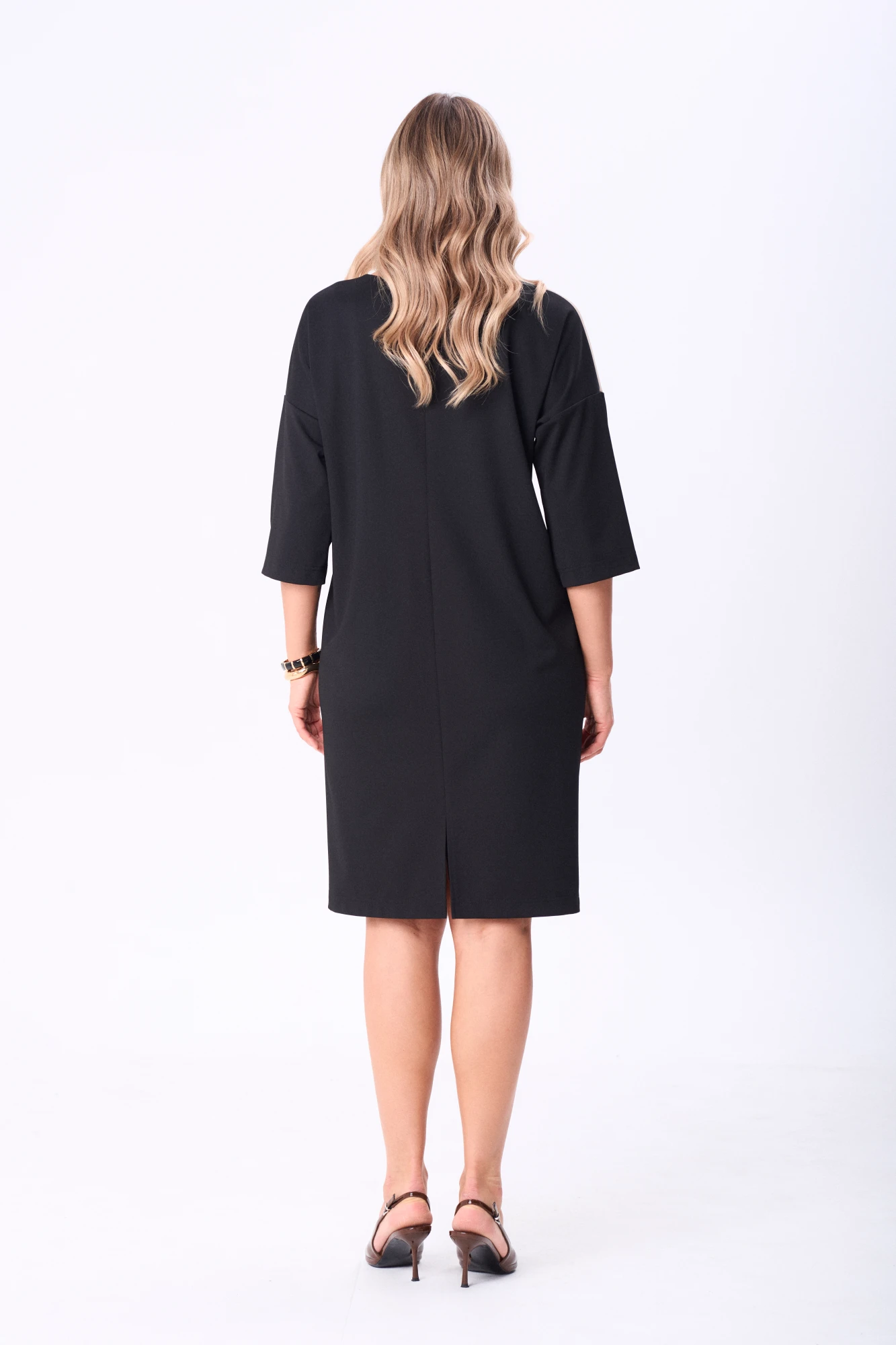 Осенняя деловая модель станет отличным выбором для полных женщин благодаря простому крою и большим размерам. Уникальность этой красивой вещи позволяет легко комбинировать её с различными аксессуарами и обувью. Роскошное модное сочетание делает этот предмет гардероба незаменимым в каждом сезоне — будь то весна или новый год. Спинка со средним швом, горловина овальной формы. В качестве декора- брендированная металлическая нашивка на кармане. Длина платья: (50-52)-97 см, (54-56)-101см. Длина рукава: (50-56)-28 см.