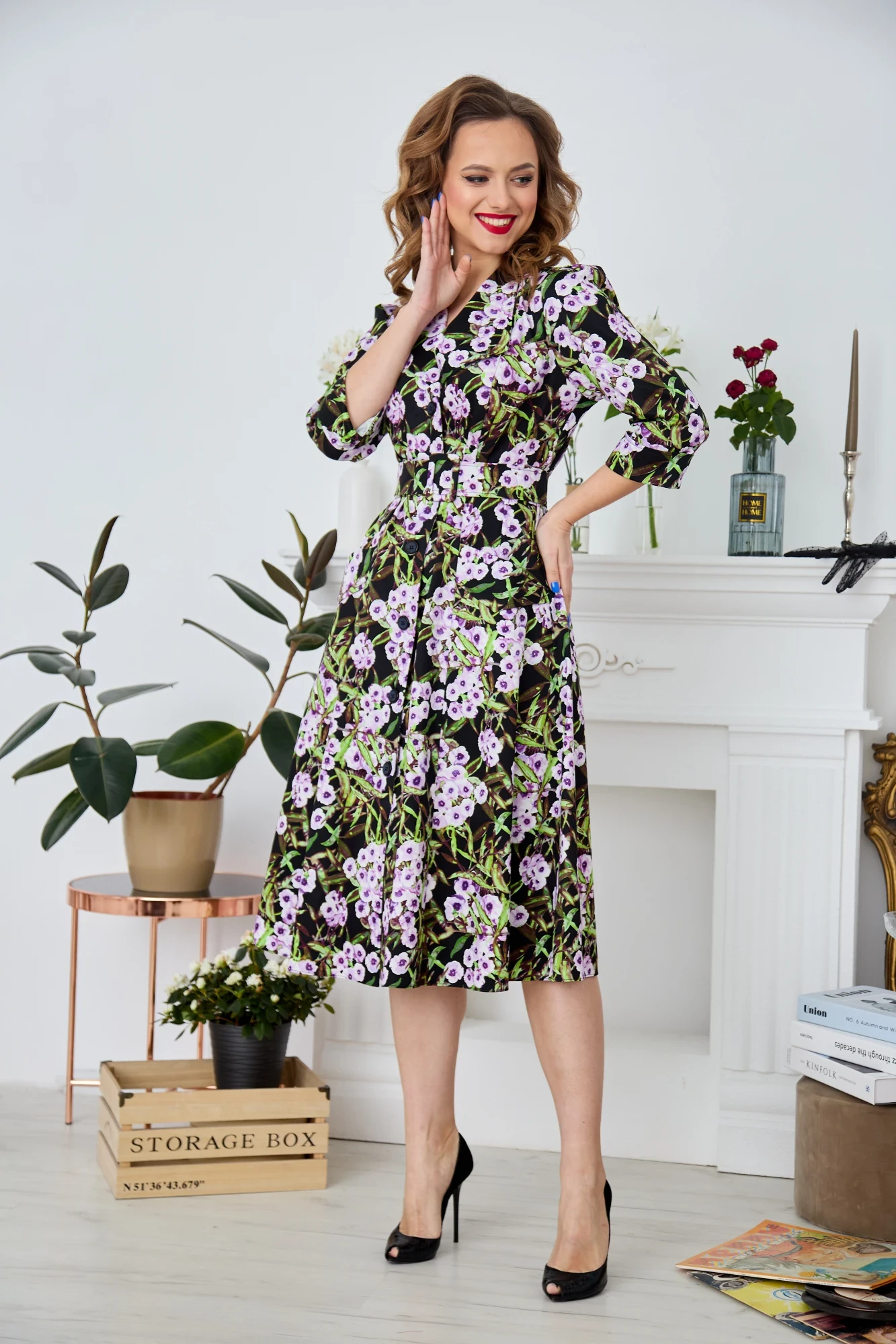 Платье Anastasia 752 черный (принт цветы)