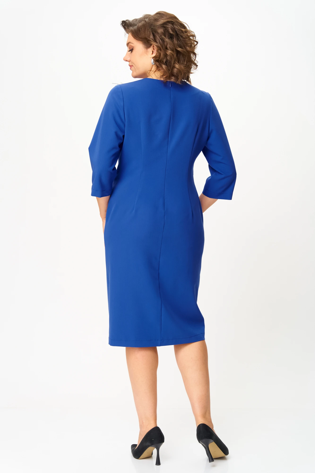 Полочка платья двухслойная, ассиметричная. Нижняя часть полочки отрезная по линии талии, лиф полочки с нагрудными и талиевыми вытачками, нижняя часть с талиевыми вытачками.