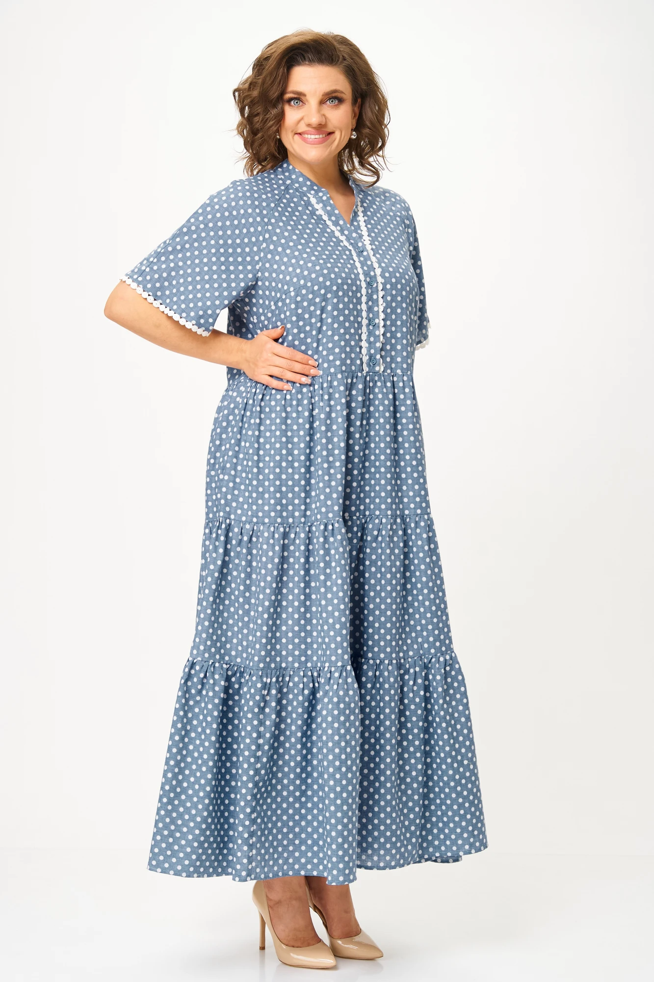 Платье ANDINA CITY 8036-25 джинсовый /горох