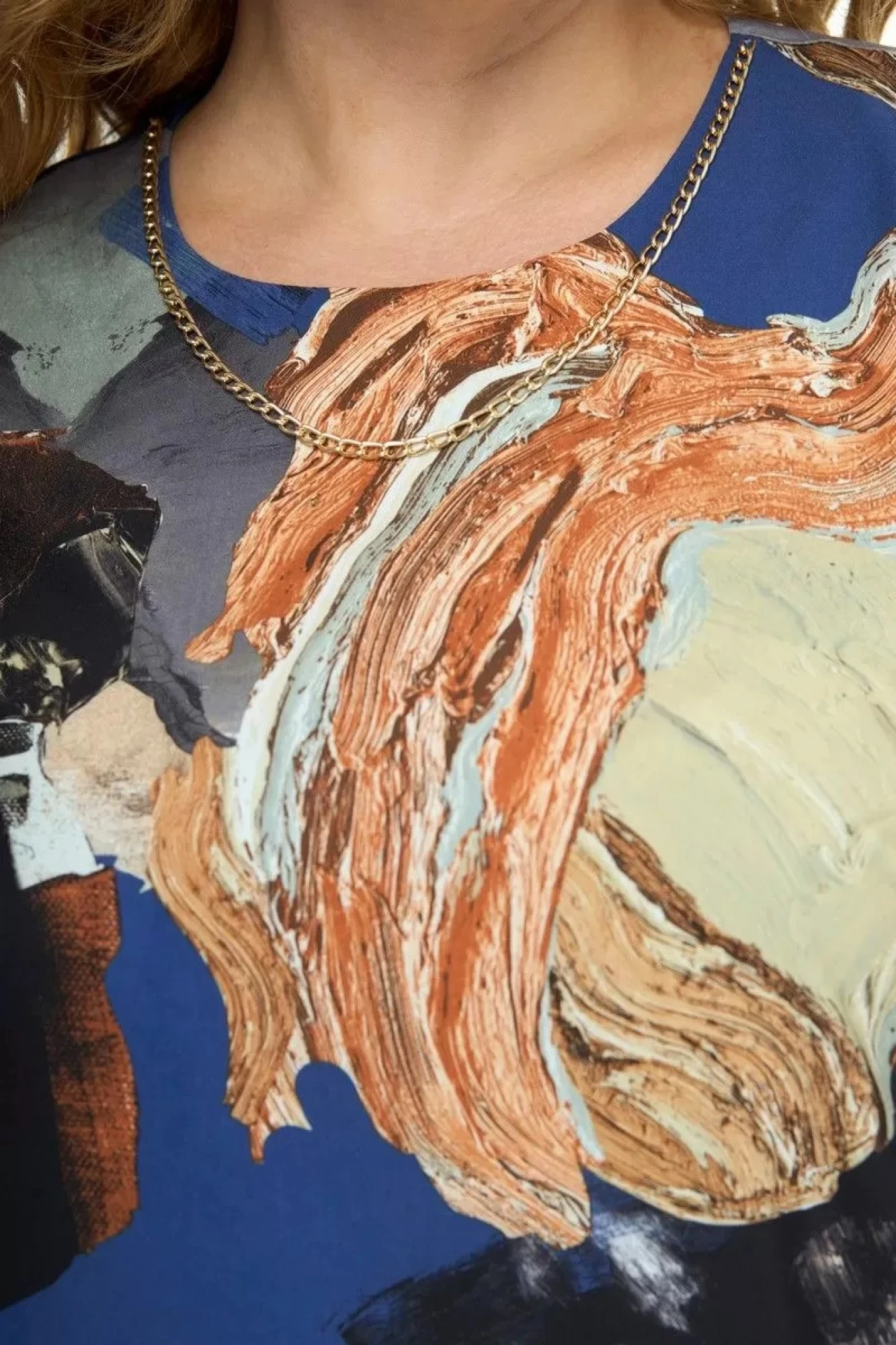 64Прямой силуэт. Втачные укороченные рукава, понизу присборены на резинке. Вырез горловины округлый с декоративным элементом-цепочкой. Низ платья украшает притачной волан.