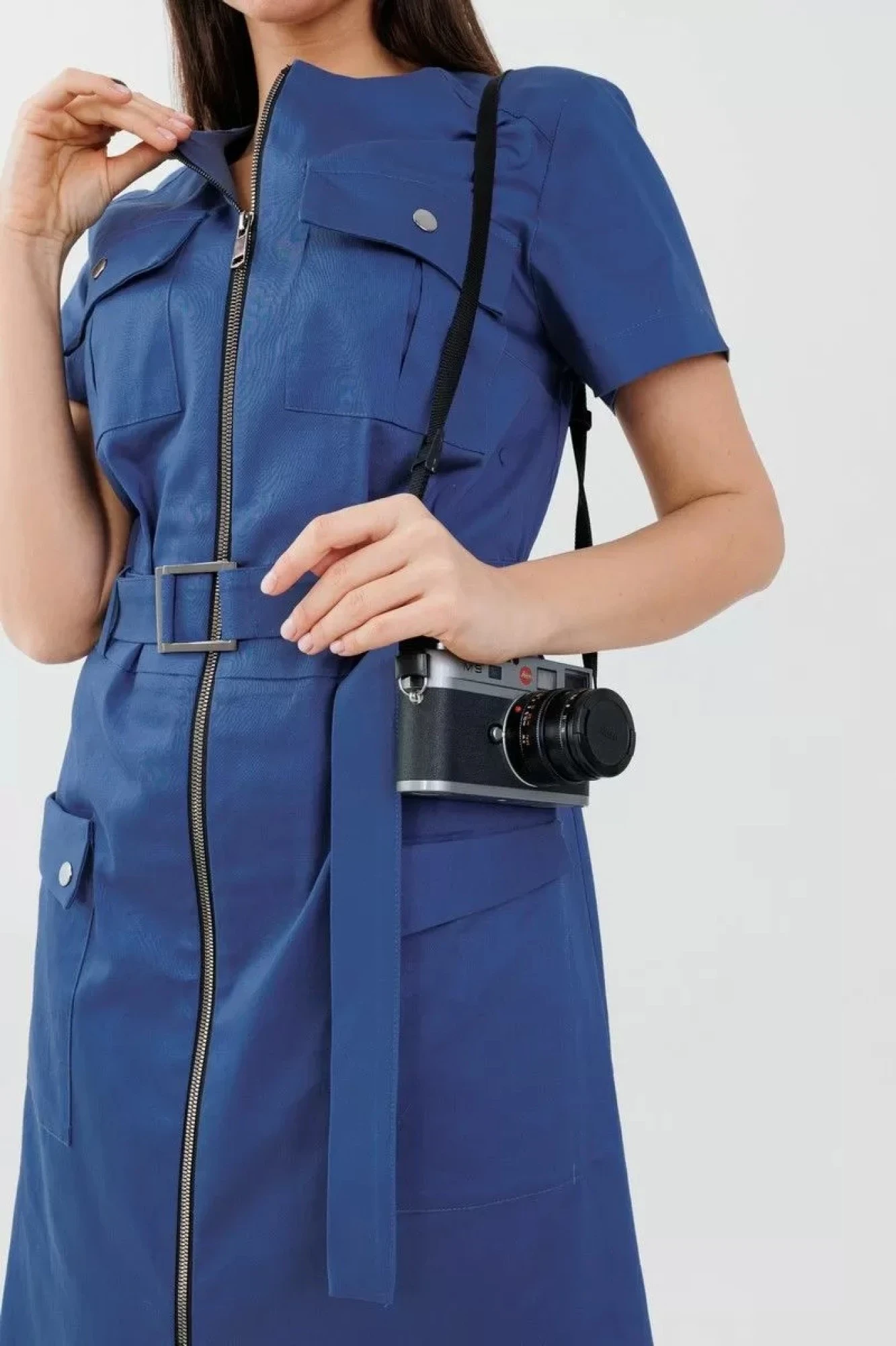 С помощью молнии на передней части платья одевание становится легким и удобным. Притачной пояс на резинке по спинке обеспечивает идеальное прилегание и акцентирует внимание на вашей талии. Функциональные нагрудные и набедренные карманы придают практичность и добавляют нотку стиля.