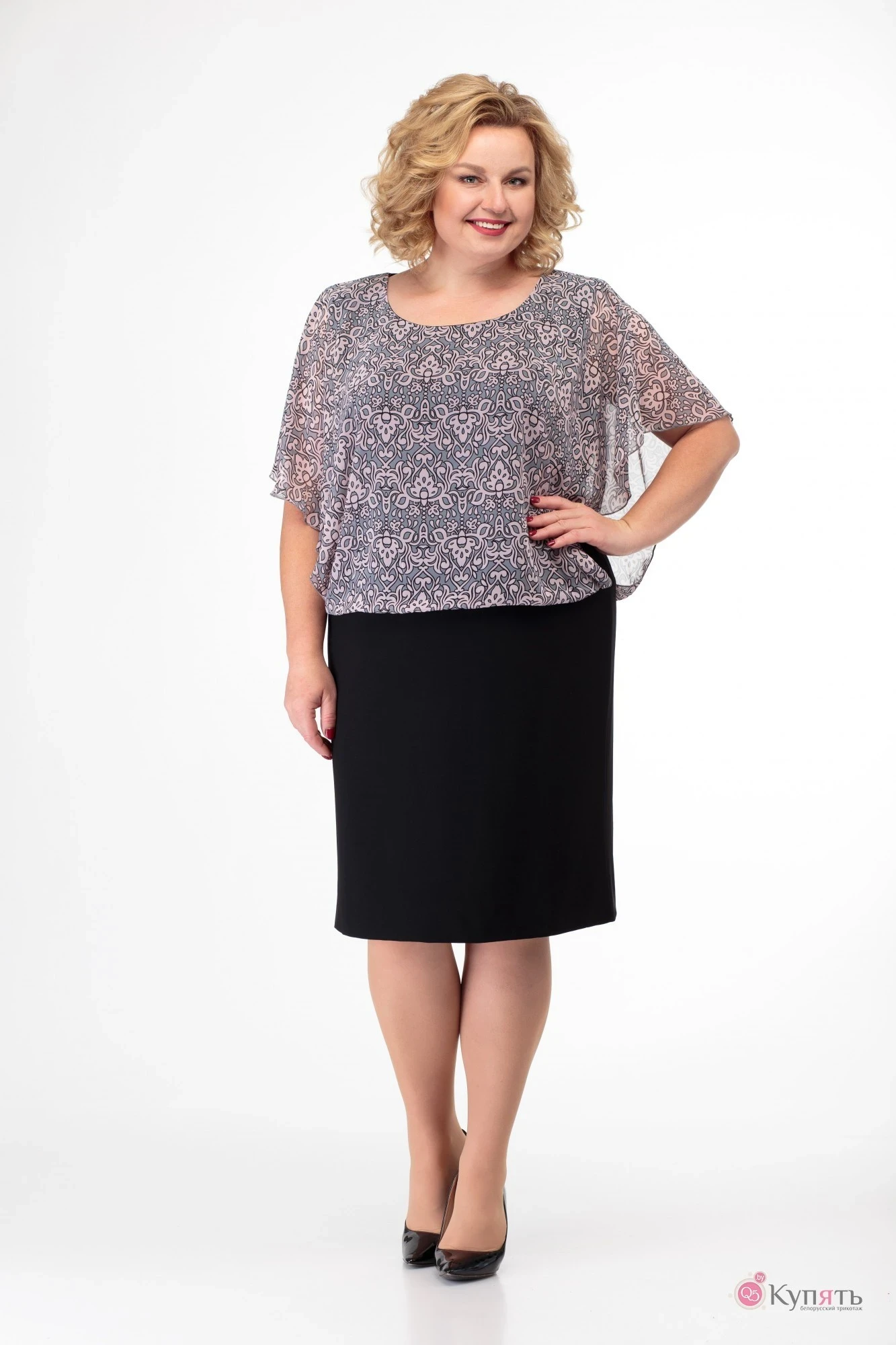 54,56,58Платье на подкладке, верхняя часть лифа выполнена из шифона, более свободная по объему, мягко скрадывает недостатки фигуры, формирует изящный силуэт, воздушные цельнокроеные рукава-крылышки придают легкости образу, вырез горловины округлый.