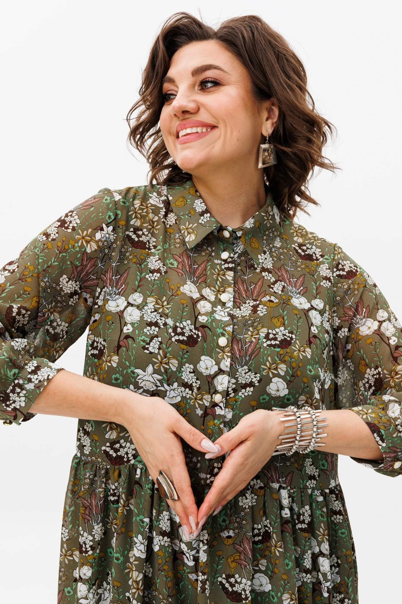 Горловина с воротником на стойке – это изысканный акцент, придающий платью утонченность. Отрезное по талии платье создает легкость движения и подчеркивает вашу женственность. Нагрудные вытачки на передней части добавляют дополнительную структуру и сдержанную грацию.