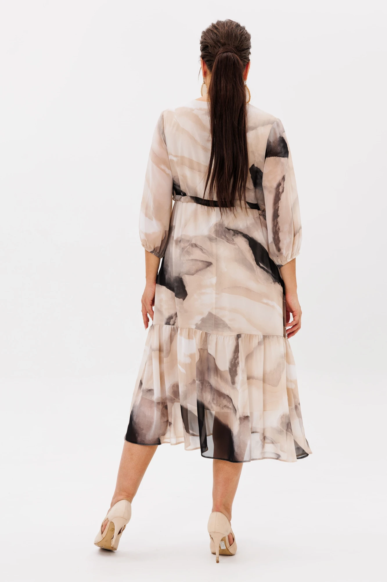 Подкладка из мягкого материала обеспечивает комфорт при носке, предотвращая просвечивание и создавая идеальную структуру. А волан по низу платья добавляет игривости и динамичности, придавая вашему образу легкость и романтичность.
