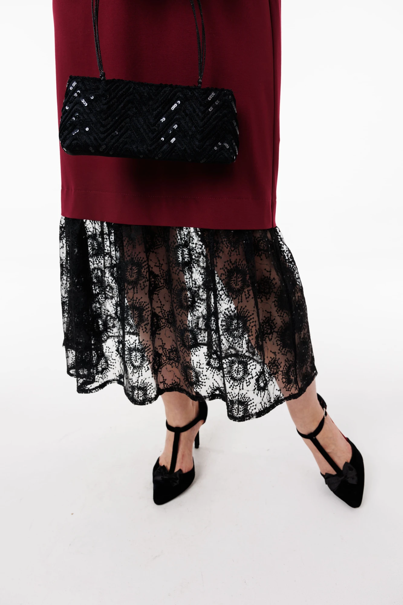 Особое внимание стоит уделить волану из гипюра, который украшает подол платья. Этот элемент добавляет нотку игривости и романтики, делая платье особенно привлекательным. Гипюр нежно струится при движении, создавая эффект легкости и грации.