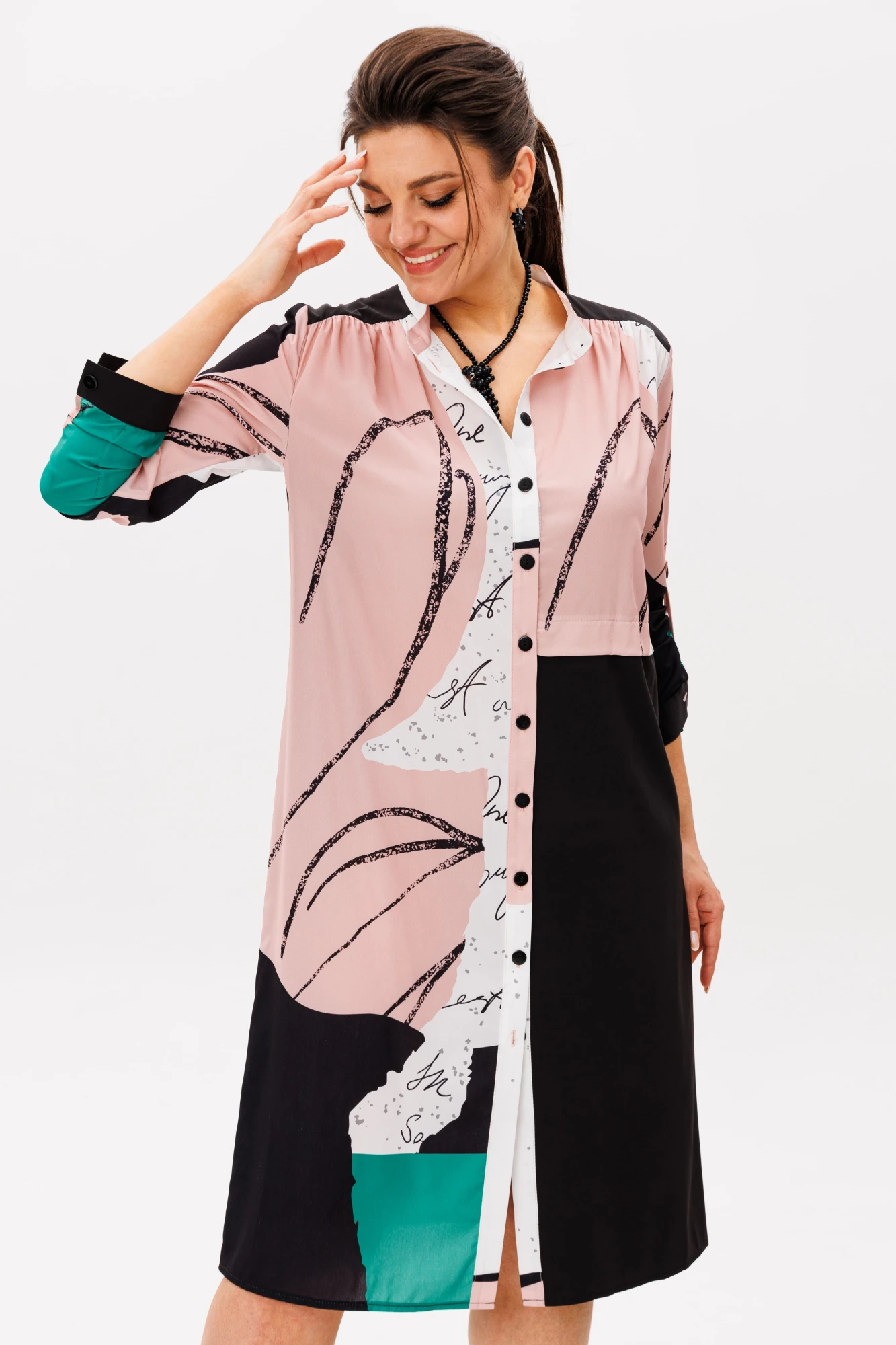 48, 50Легкое и струящееся, это платье-рубашка играет на контрасте текстур и смыслов. В нем строгая геометрия кроя встречается с художественной свободой абстрактного принта, создавая образ для тех, кто ценит осознанную эстетику.