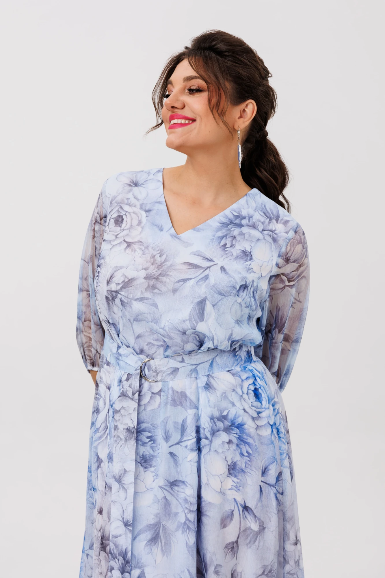 Пояс из той же струящейся вискозы мягко подчеркивает талию, сохраняя плавность силуэта. Длина миди делает платье идеальным для теплых дней — оно прекрасно подойдет для прогулок по цветущим паркам, романтического свидания или свадебного торжества в стиле нежной элегантности.
