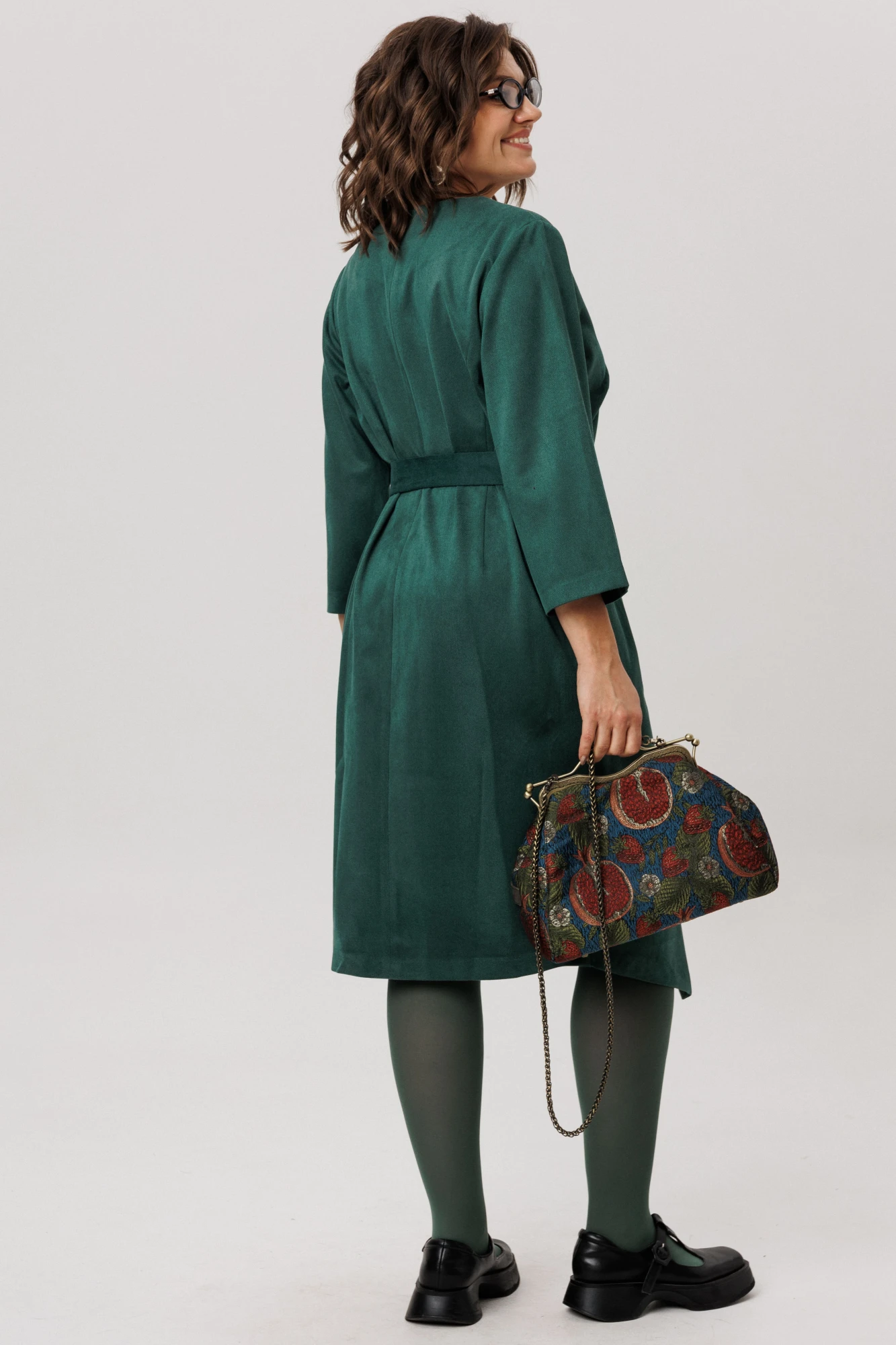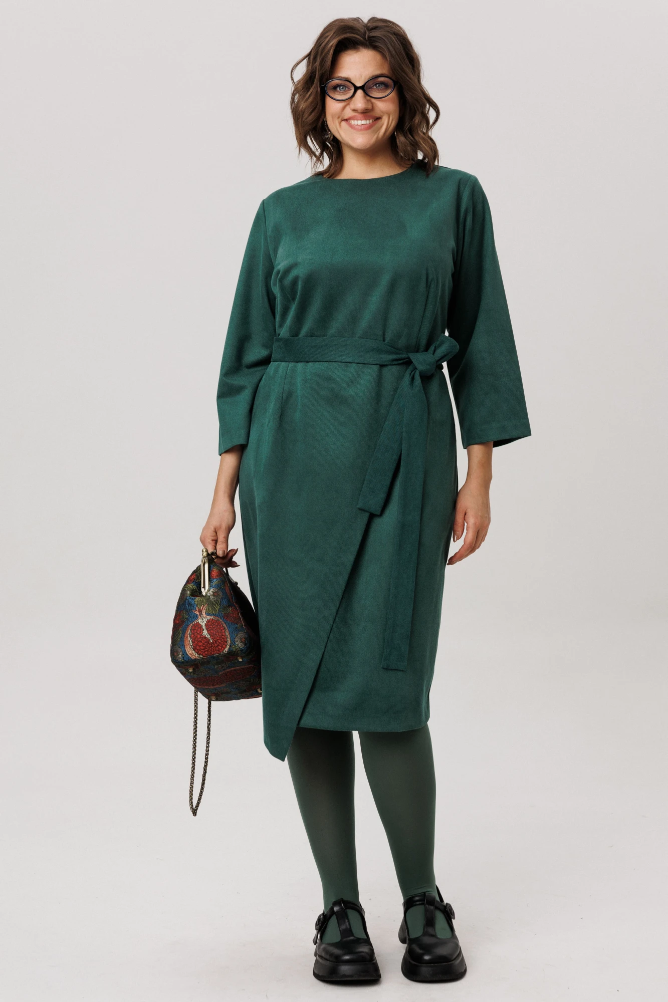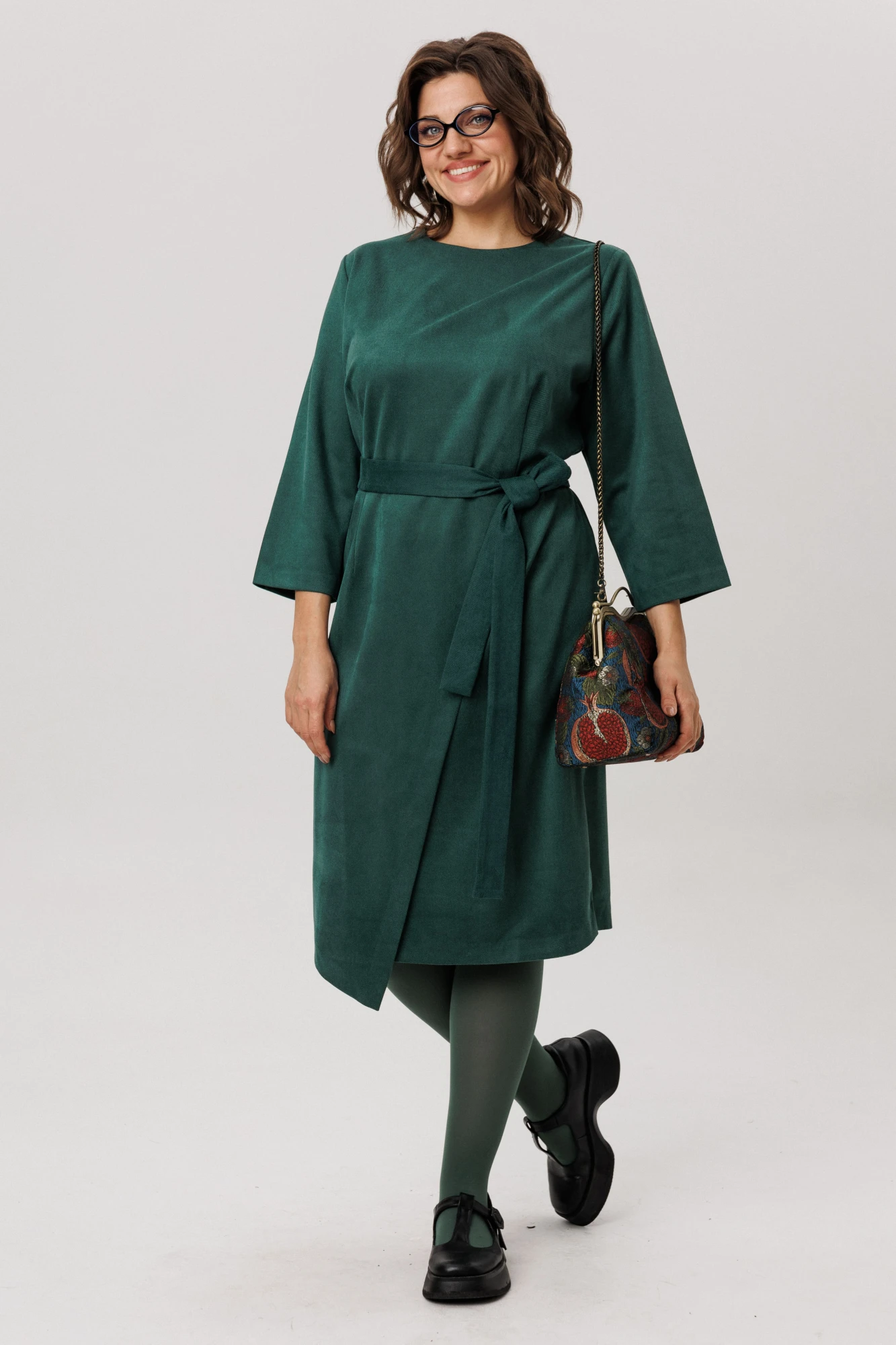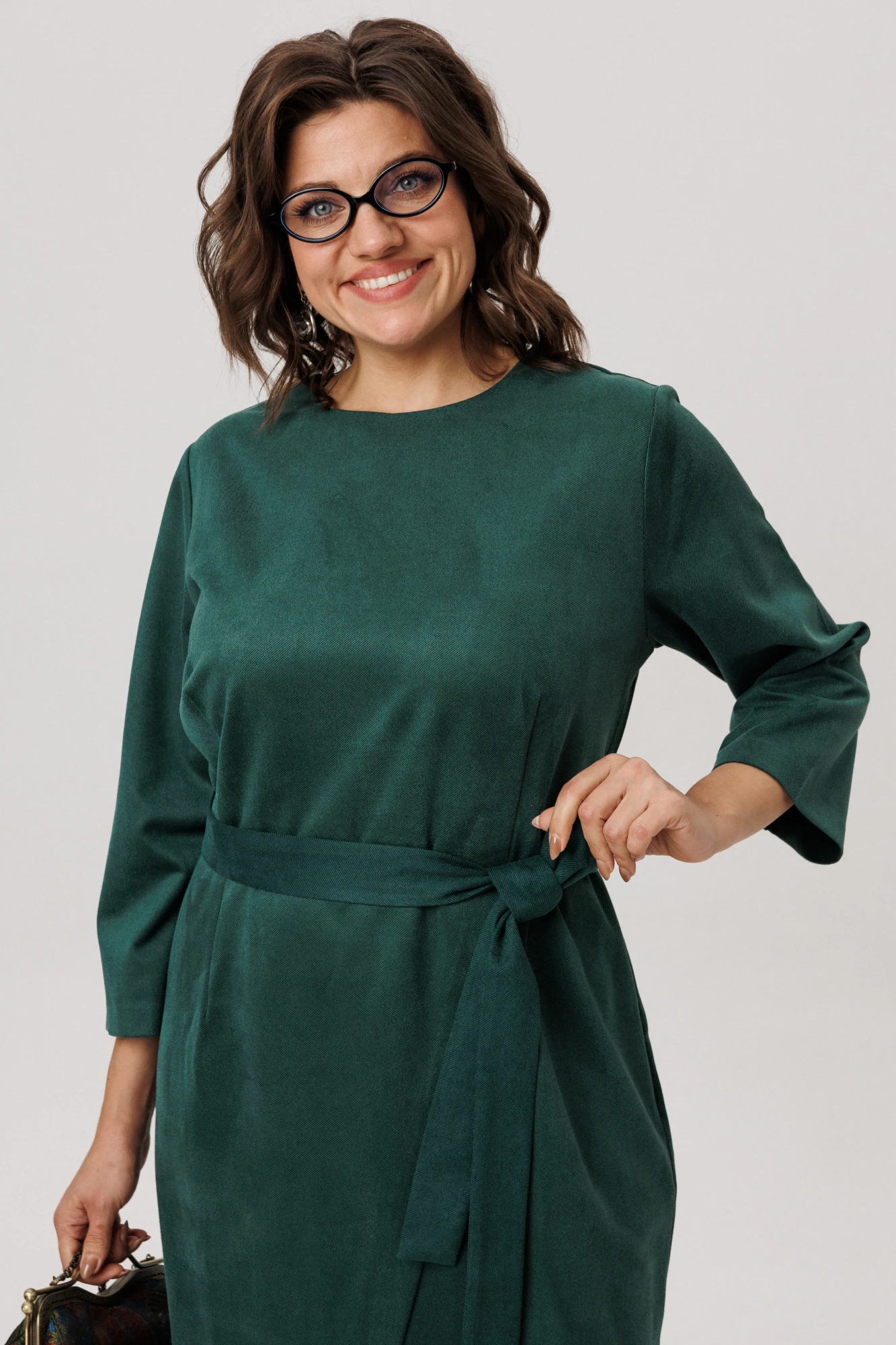 Потайная молния по спинке элегантно подчеркивает изящные линии и изгибы. Трехчетвертной рукав элегантно открывает линию запястья приковывая внимание. В качестве аксессуаров к платью можно добавить кожаный ремень, вместо родного тканевого. Массивные серьги или украшения на шею.