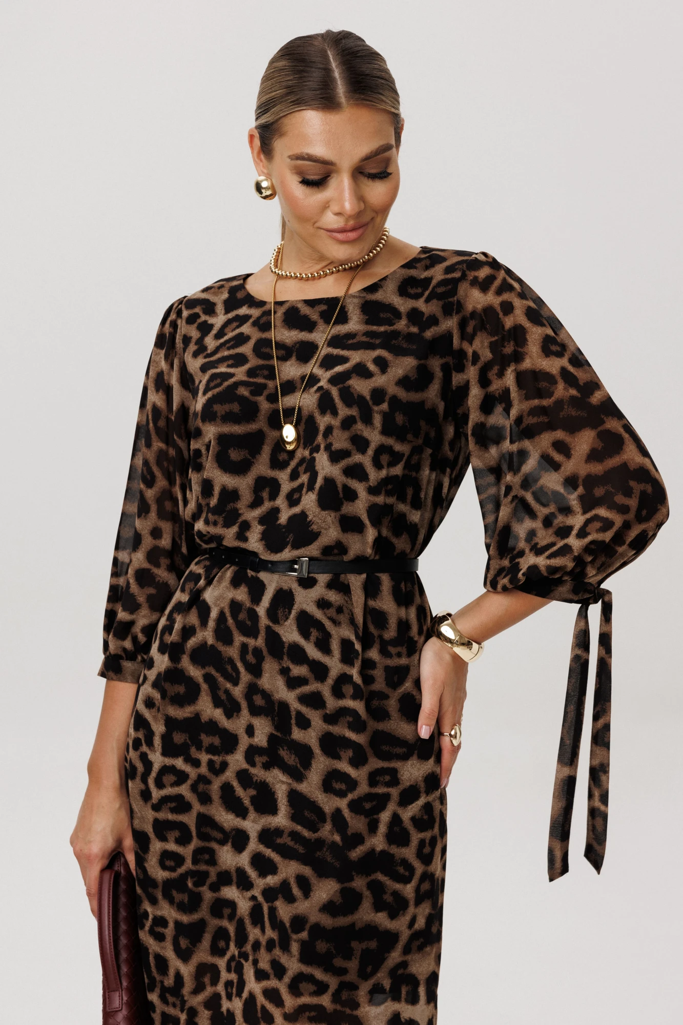 Нежная текстура материала в сочетании с дерзким принтом создаёт ощущение лёгкости, воздушности и одновременно страсти, что делает его незаменимым для особых случаев.