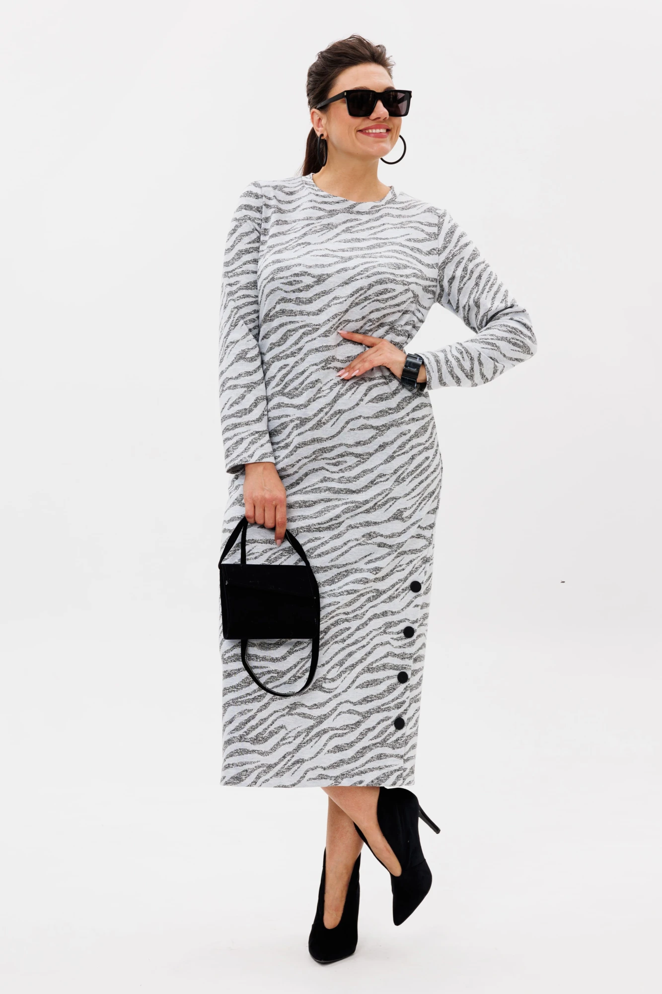 Яркий и необычный принт привлекает внимание и выделяет ваш образ, подчеркивая вашу индивидуальность. В таком платье вы всегда будете выглядеть стильно и чувствовать себя уверенно, сохраняя при этом комфорт и лёгкость движений.