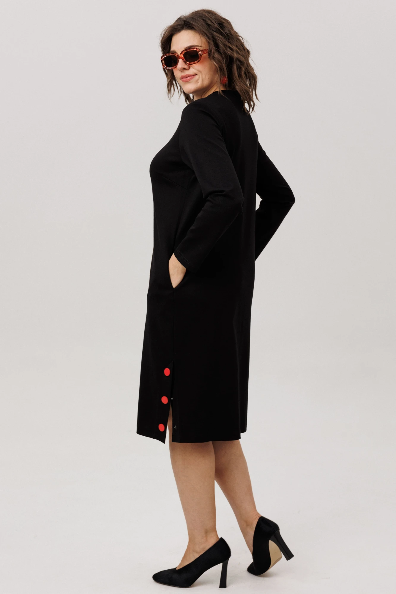 В боковых швах предусмотрены карманы, что делает платье ещё более практичным и удобным.