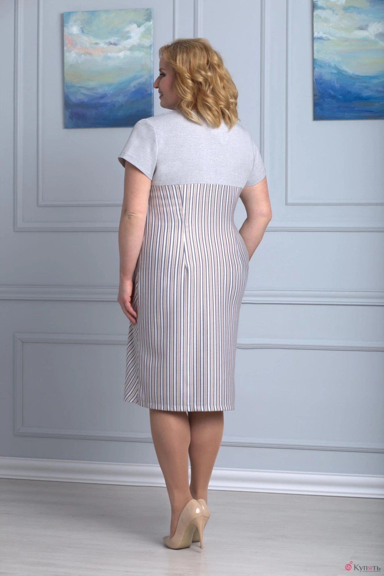 Платье Anelli 205 бежевый полоска