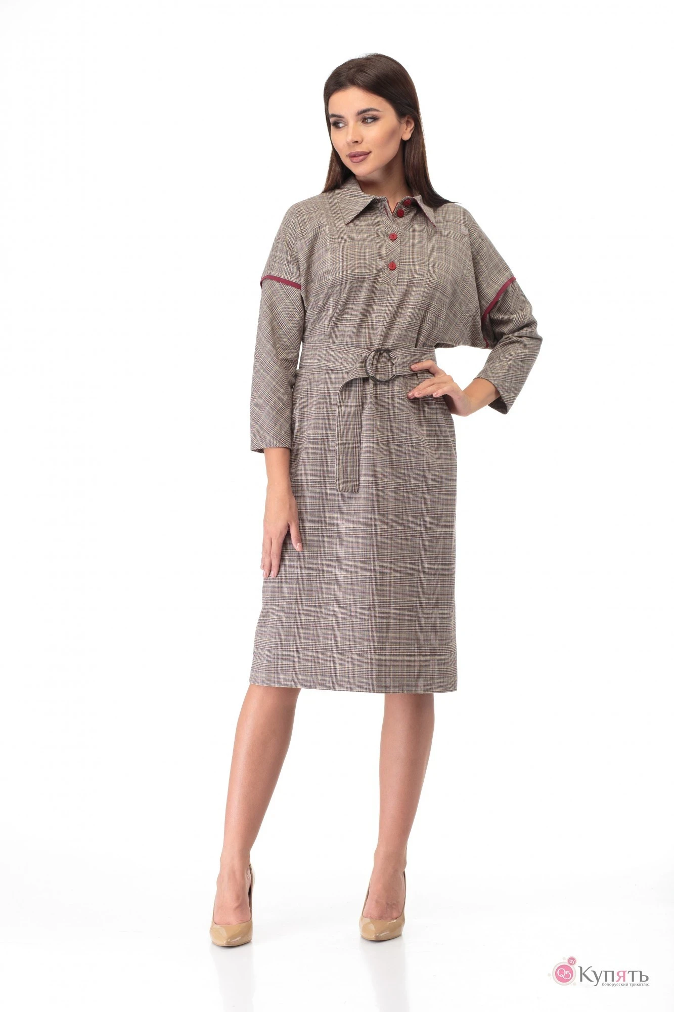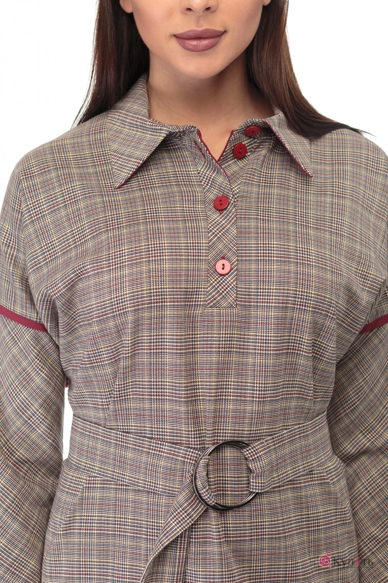 Актуальный покрой рукава - цельнокроенный "летучая мышь", придаёт шарм и мягкость образу. Швы украшены отделочными кантами. По переду выполнена втачная планка с застёжкой на петли и пуговицы. Воротник сорочечного типа . Платье дополняется съёмным поясом.