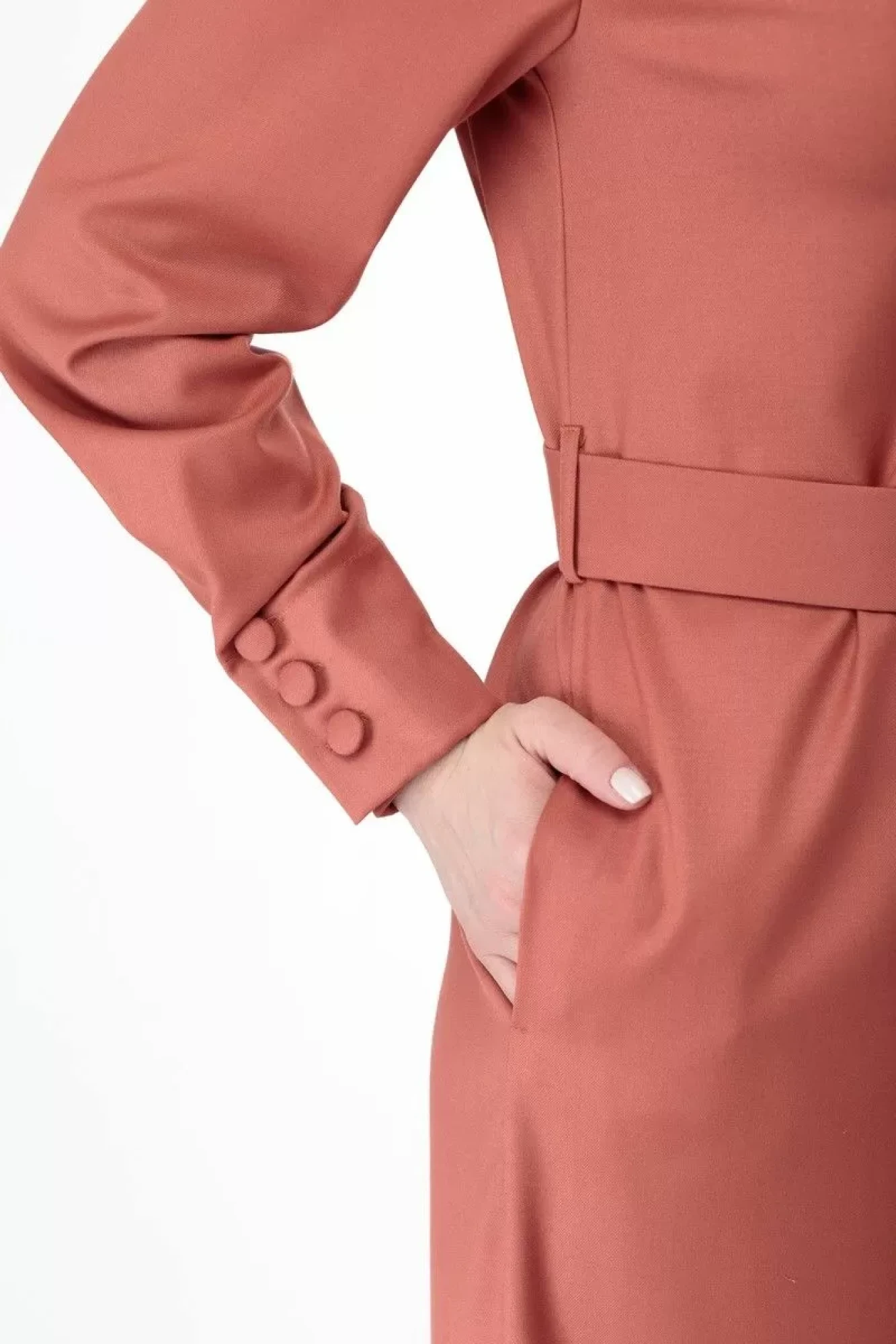 54выполнено из ткани плательно-костюмной группы в красивых оттенках голубого и терракота. Без подкладки.