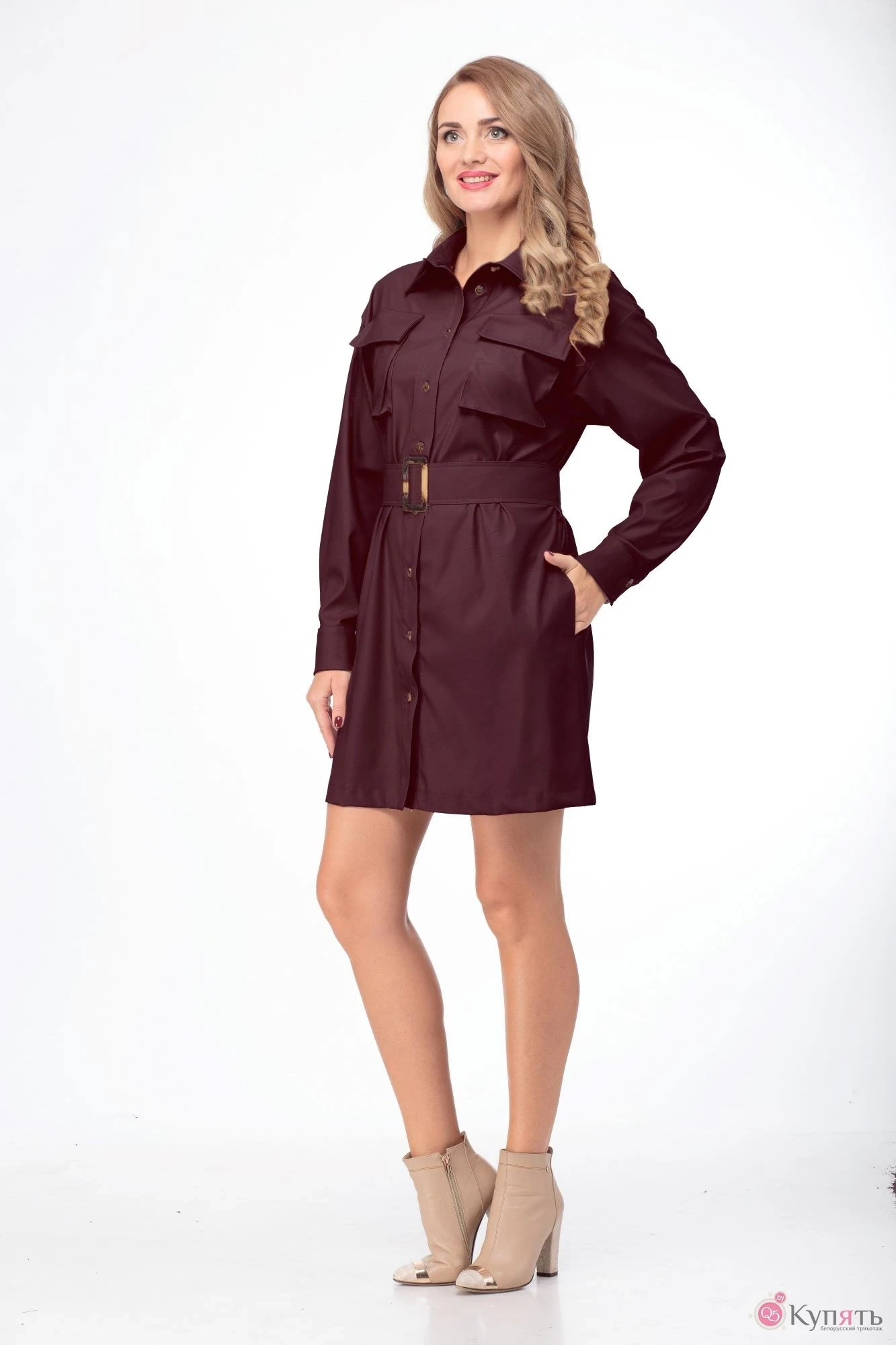 42, 44 , 46 ,48Платье-рубашка из эко-кожи свободного покроя с накладными карманами-книга и клапаном. Спущенная линия плеча, втачной одношовный рукав на манжете. Застежка на пуговицы по притачной планке. Отложной воротник на стойке.