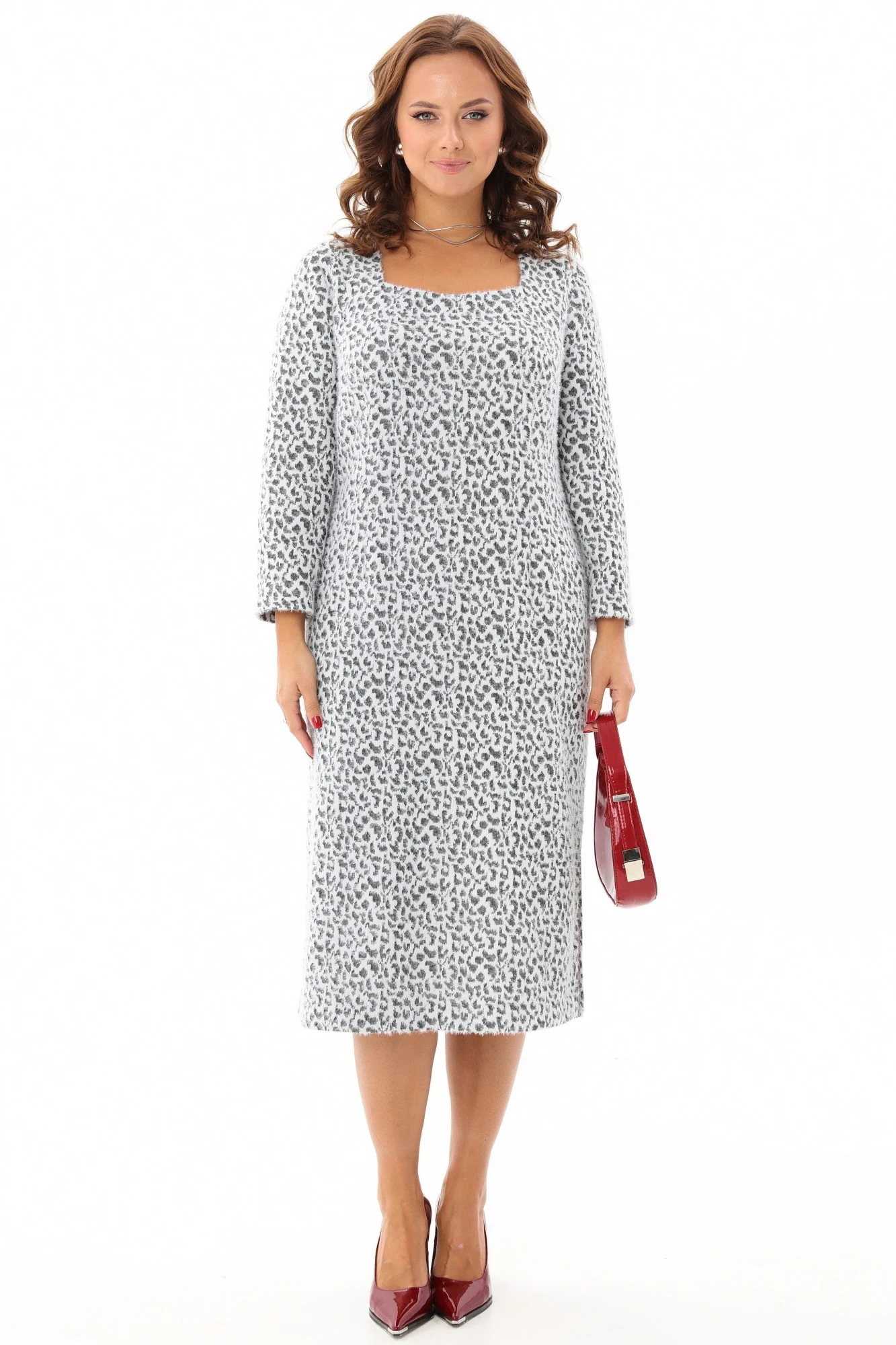 Платье прямого силуэта длиной миди. Горловина с вырезом ""каре"". По переду платья нагрудные вытачки. В боковых швах обработаны разрезы. Рукав втачной прямой длиной 7/8.