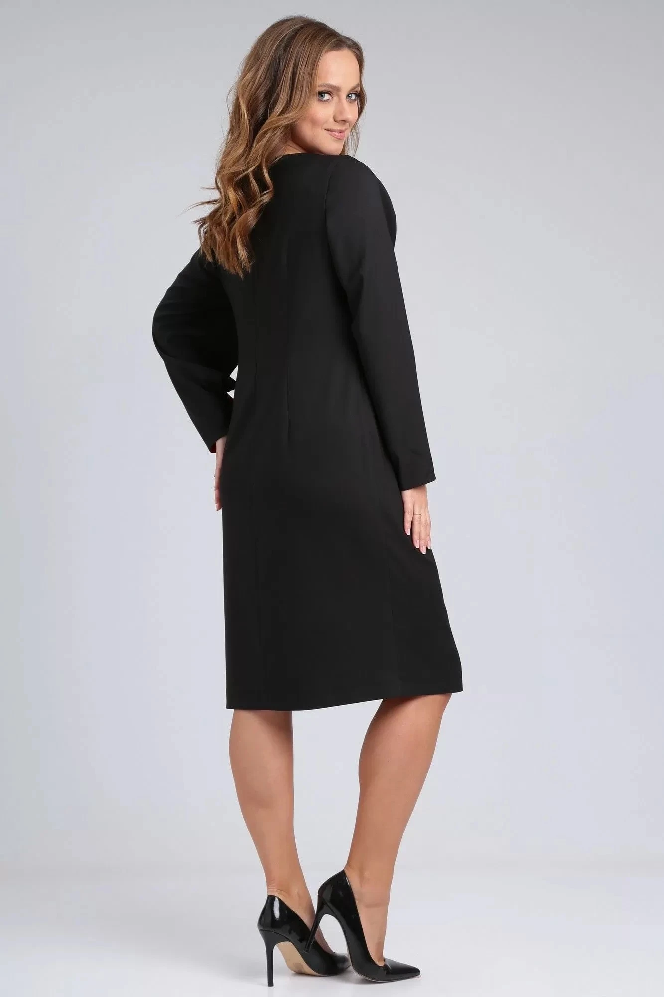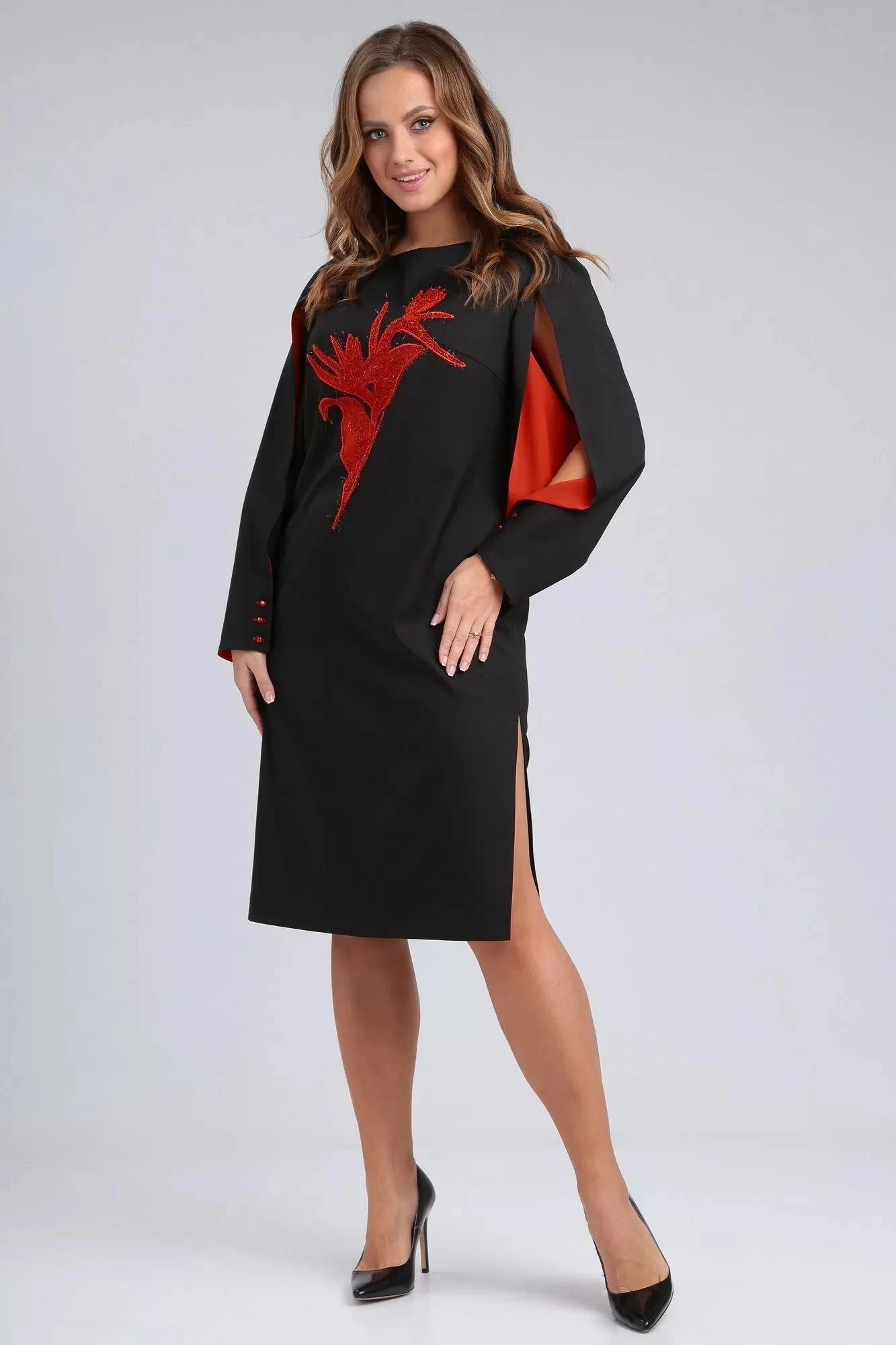 46, 48 ,50, 52 , 54 , 56 ,58Платье женское полуприлегающего силуэта из костюмно-плательной ткани. Горловина округлой формы. Перед с нагрудными вытачками и декоративной вышивкой. Спинка с талиевыми вытачками и застежкой на молнию в среднем шве. Рукав втачной длинный с разрезом, придающий особенную изысканность и шарм, по низу рукава декоративная застежка на петли и пуговицы. По низу платья в боковом шве - разрез."