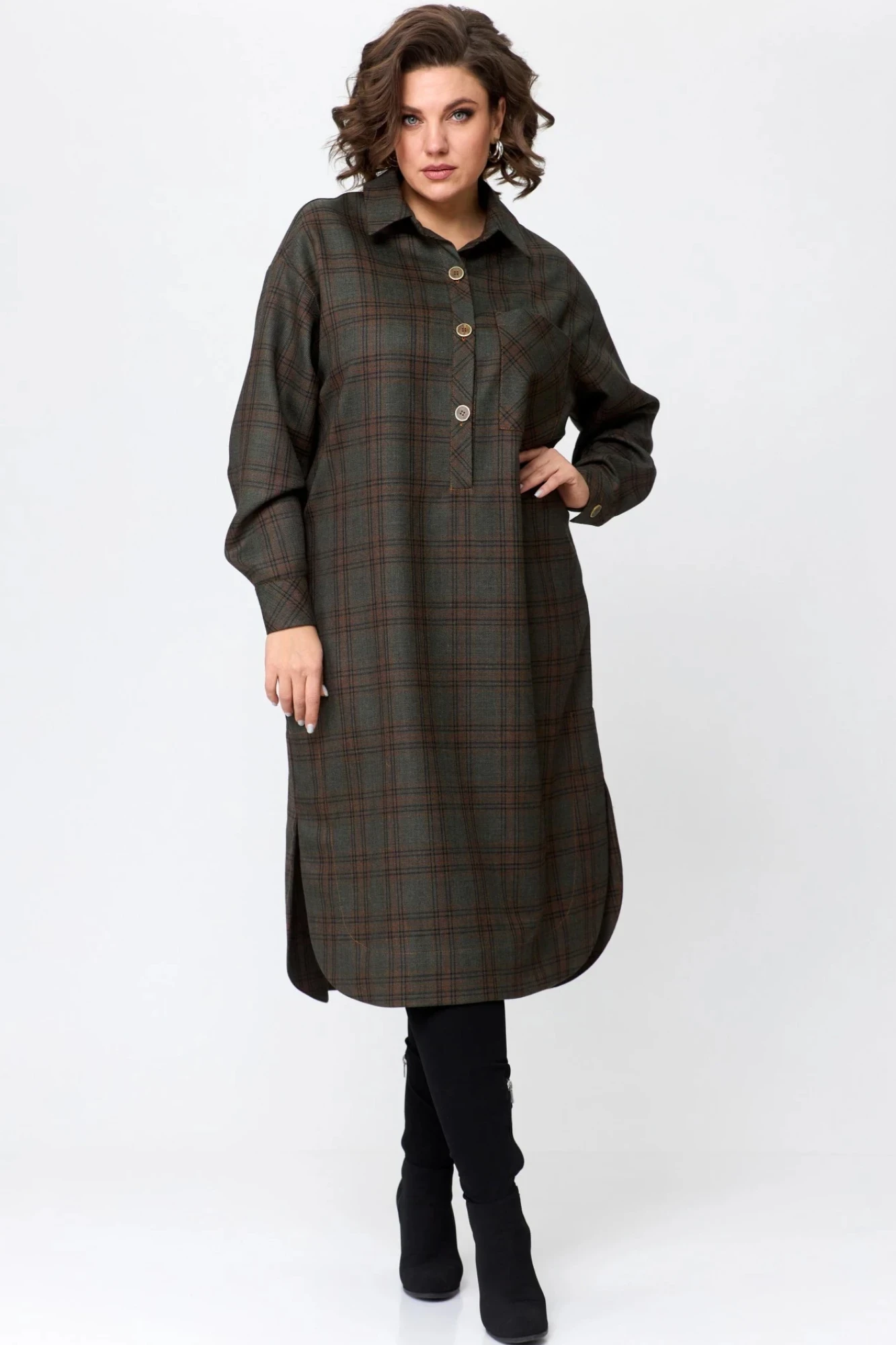 Платье Avenue Fashion 0124-1 клетка, темно оливковый