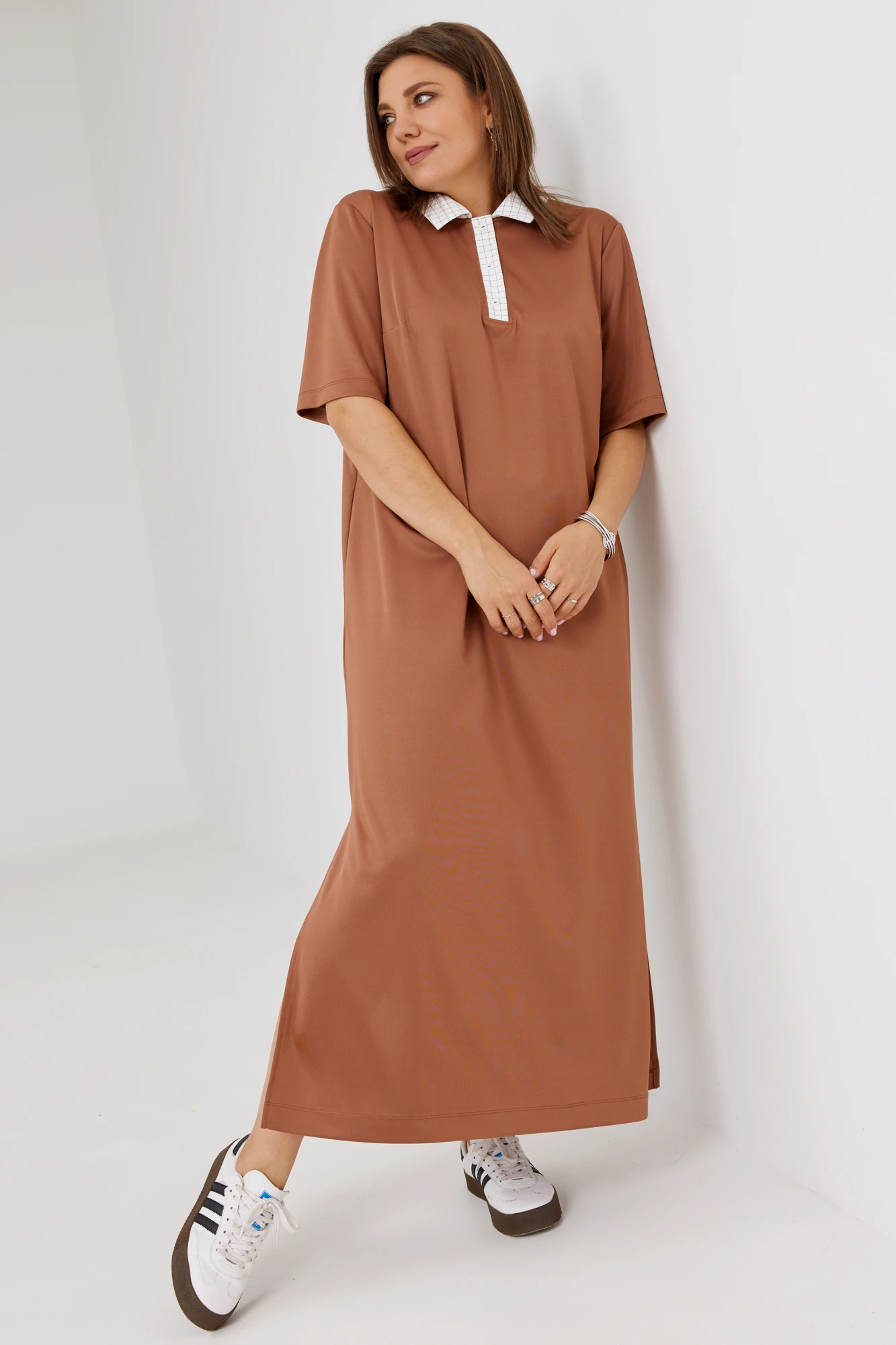 Рукав втачной с подгибкой по линии низа. На груди, а также на спинке расположены вытачки. В боковых швах – карманы и разрезы для Вашего удобства. Ощутите комфорт и свободу, нарядившись в платье на работе, шопинге, во время прогулок по парку и встреч с друзьями.