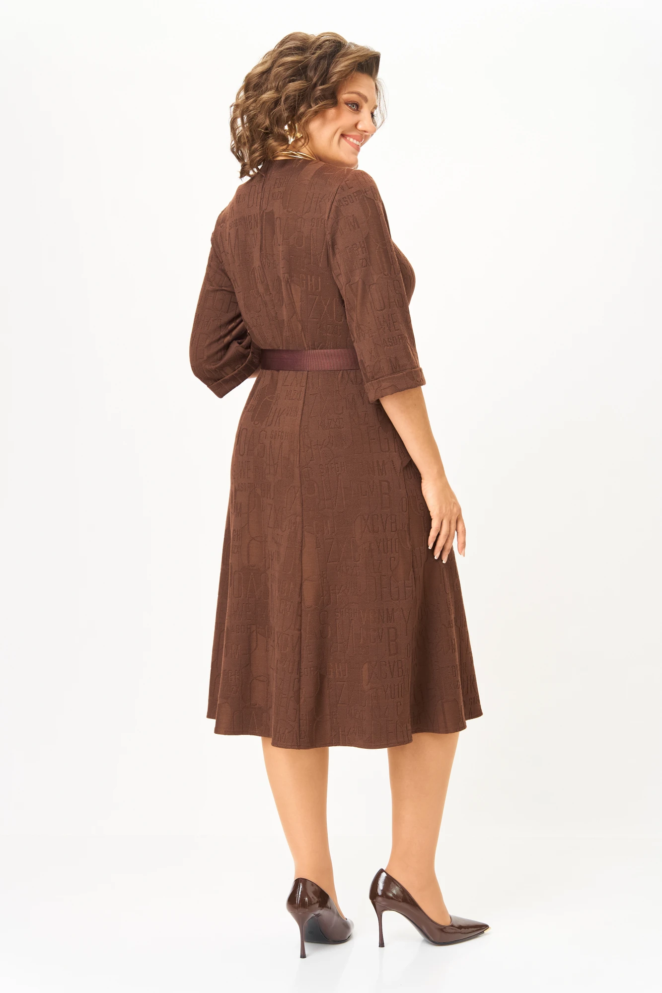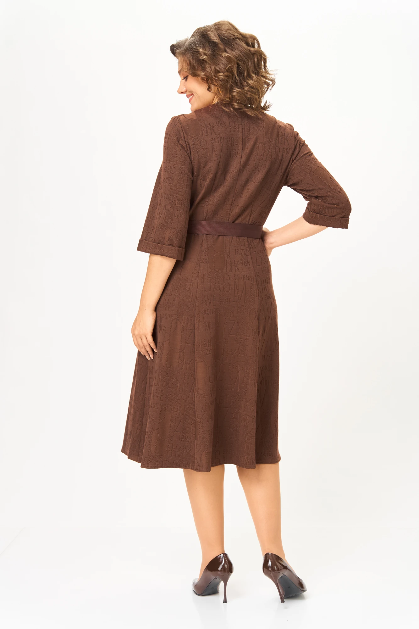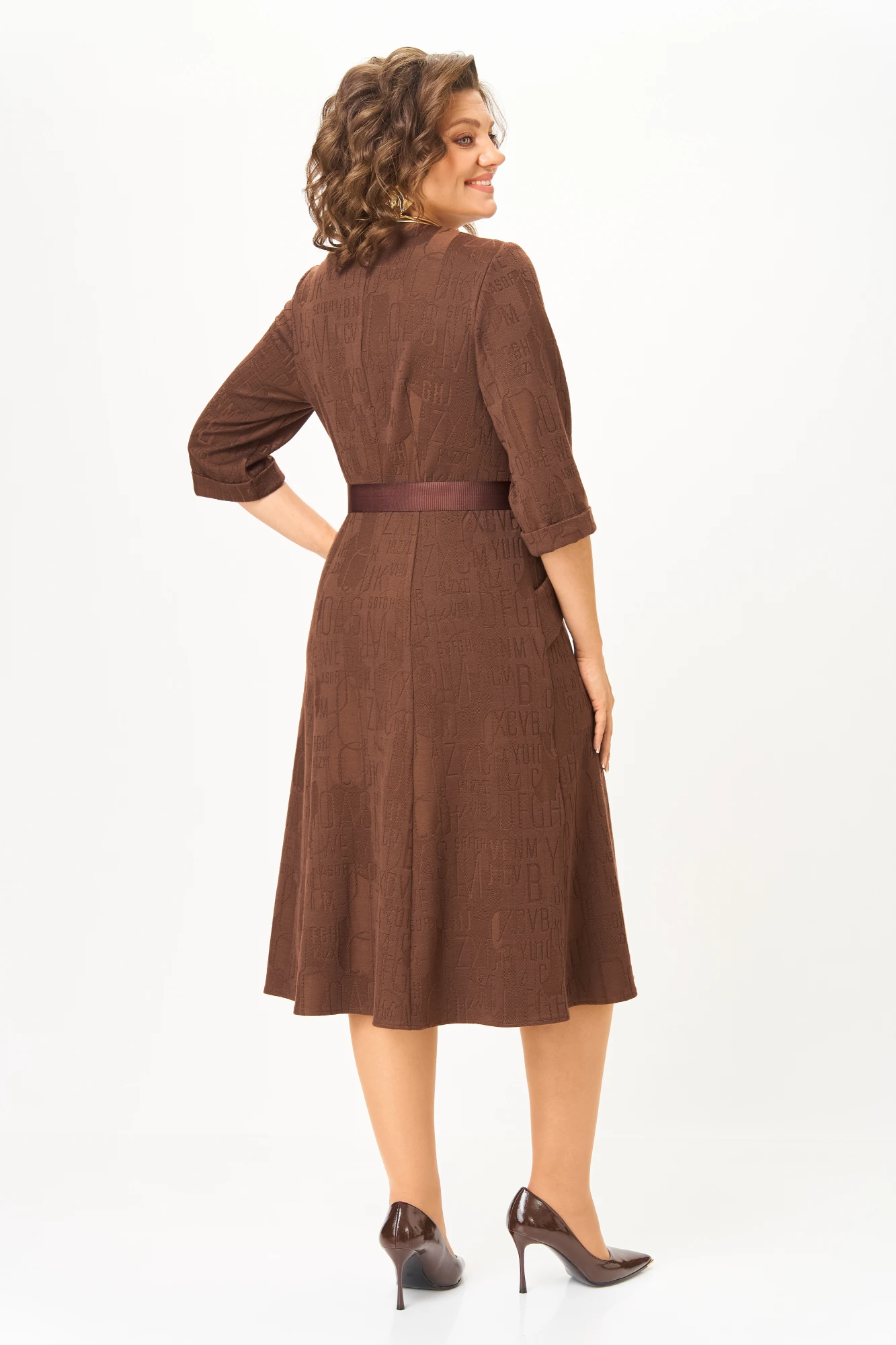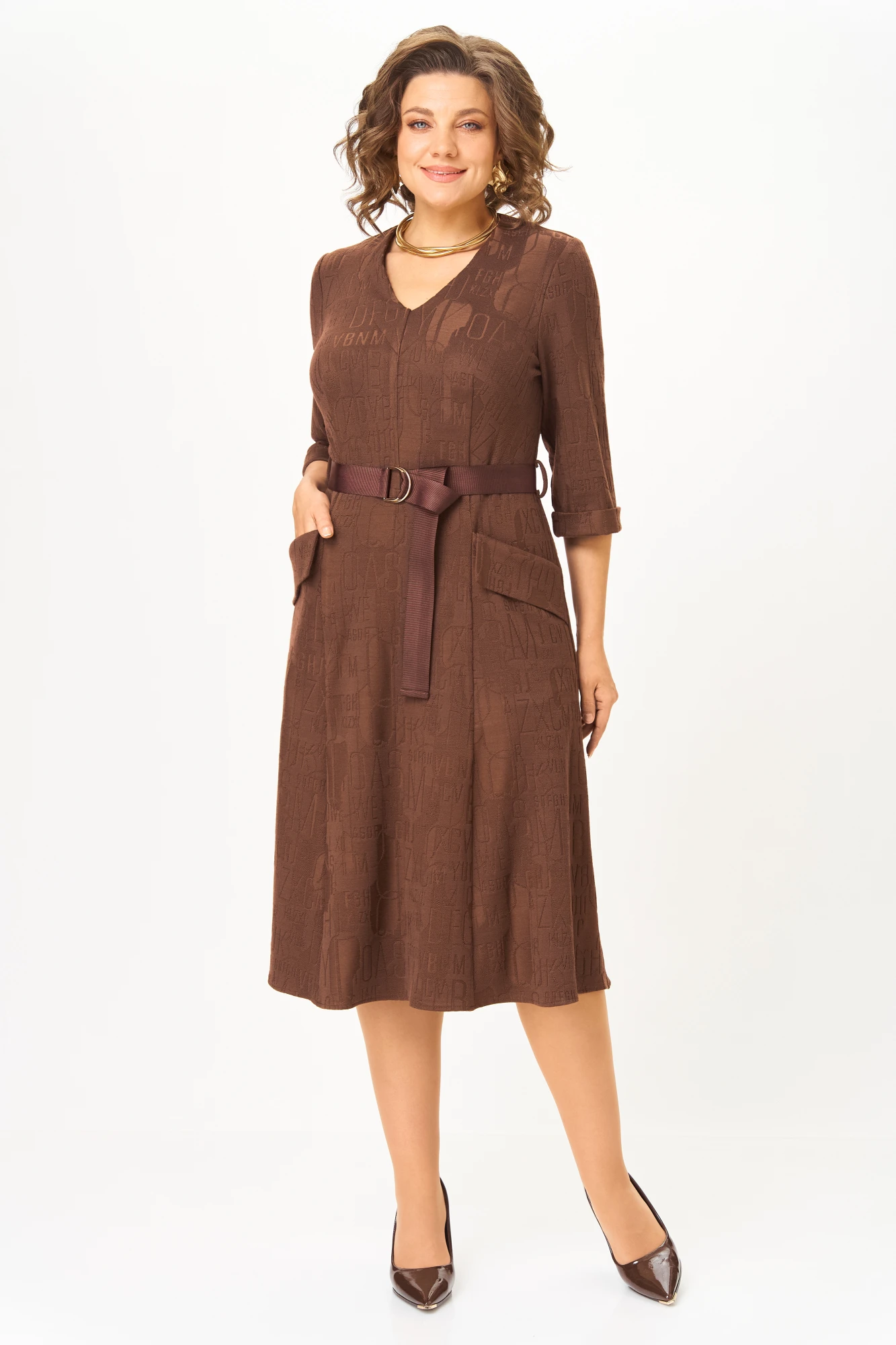 Платье полуприлегающего силуэта, отрезное по линии талии, юбка шестиклинка, расширенная к низу. На уровне бедер карманы с отложенным клапаном. На лифе по переду центральный шов, горловина V-образная.