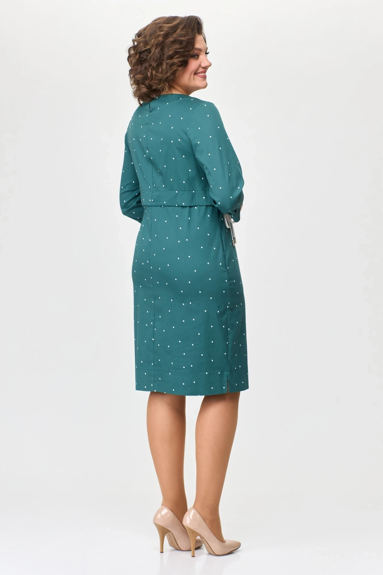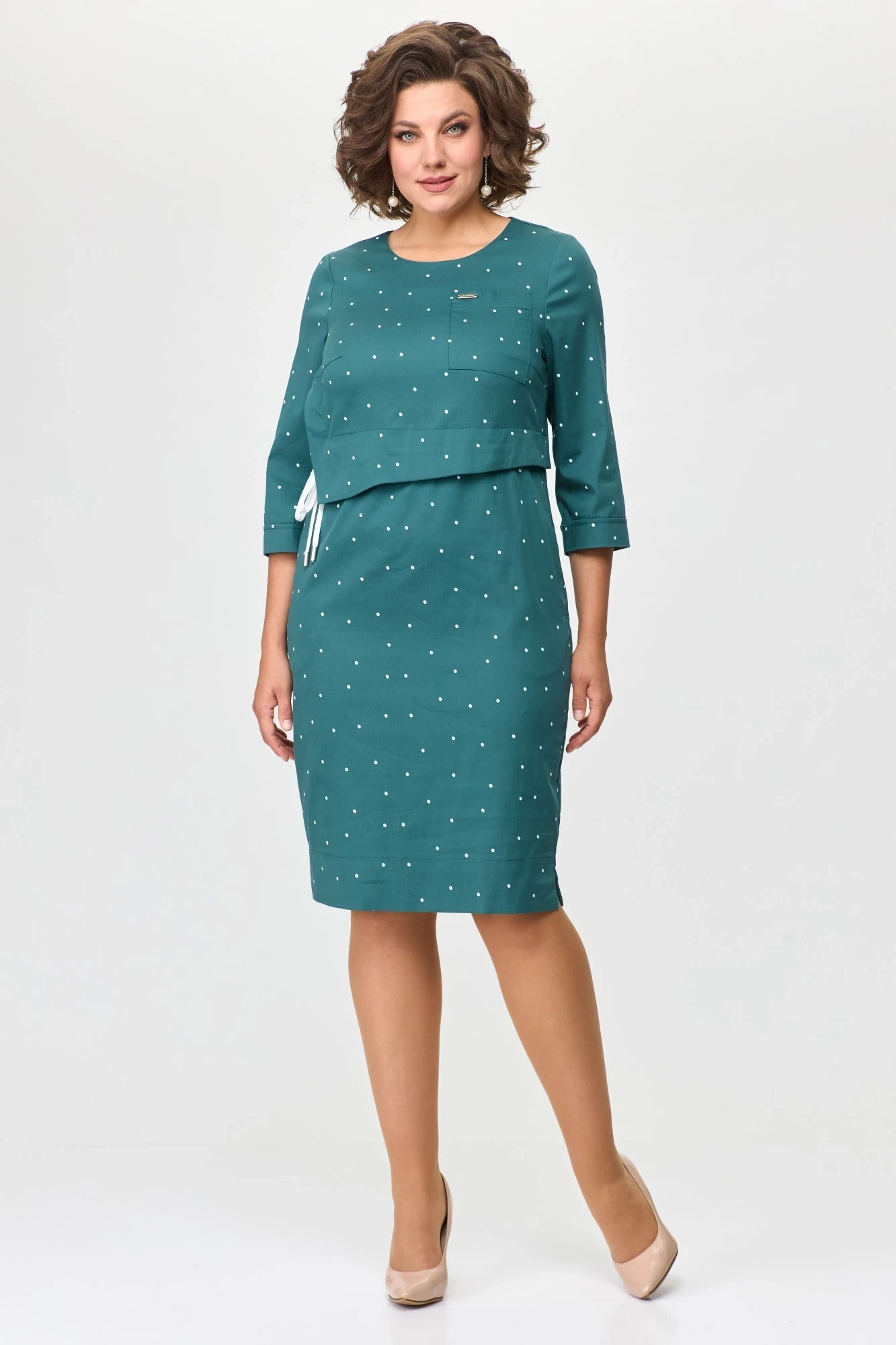 Платье полуприлегающего силуэта с отрезной линией талии. Лиф выполнен в виде отлетной детали по низу. Горловина круглая, по линии талии кулиса с декоративным шнуром.
