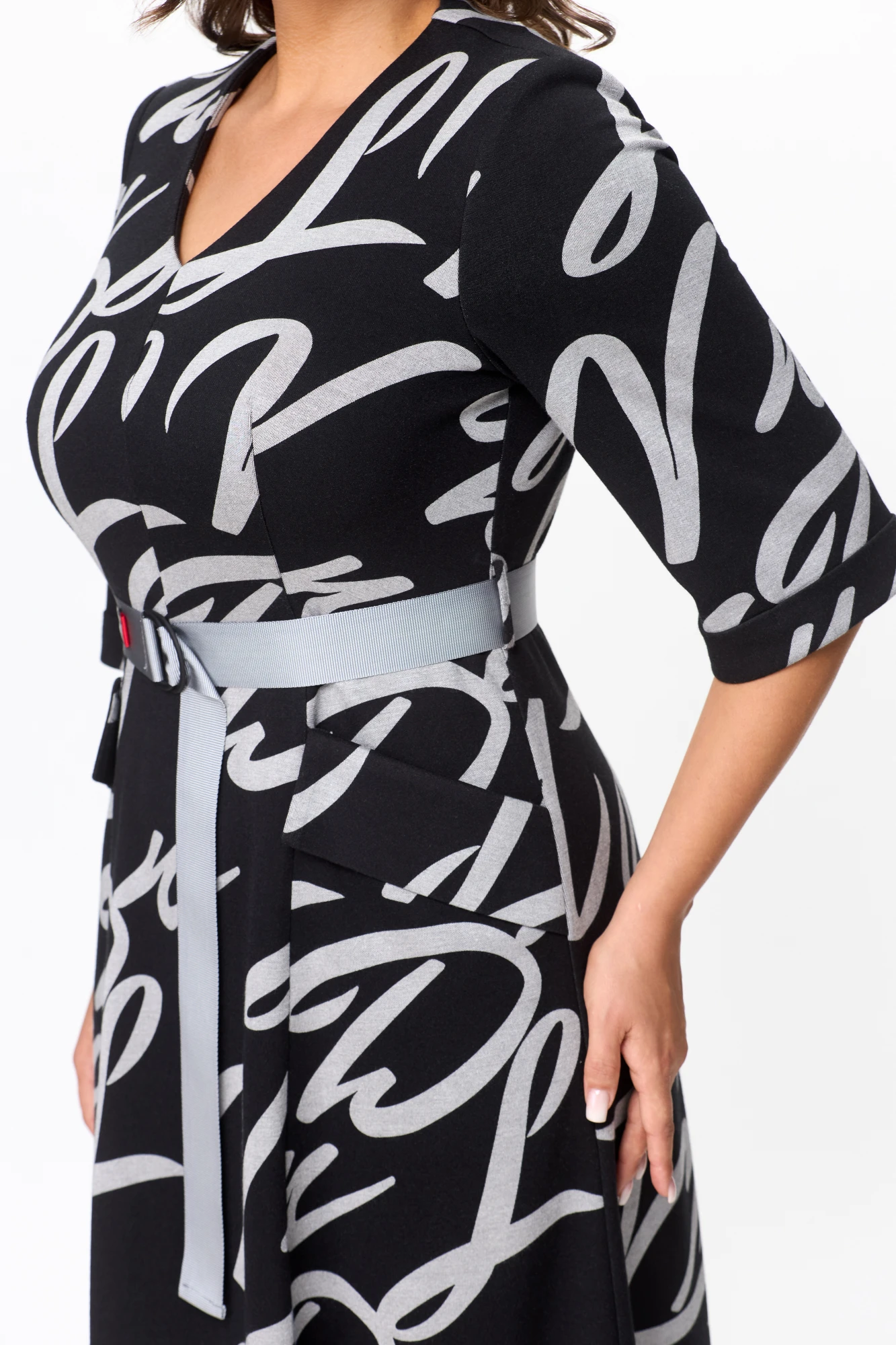 48, 50 , 52 , 54 , 56 ,58Платье полуприлегающего силуэта, отрезное по линии талии, юбка шестиклинка, расширенная к низу. На уровне бедер карманы с отложенным клапаном. На лифе по переду центральный шов, горловина V-образная.