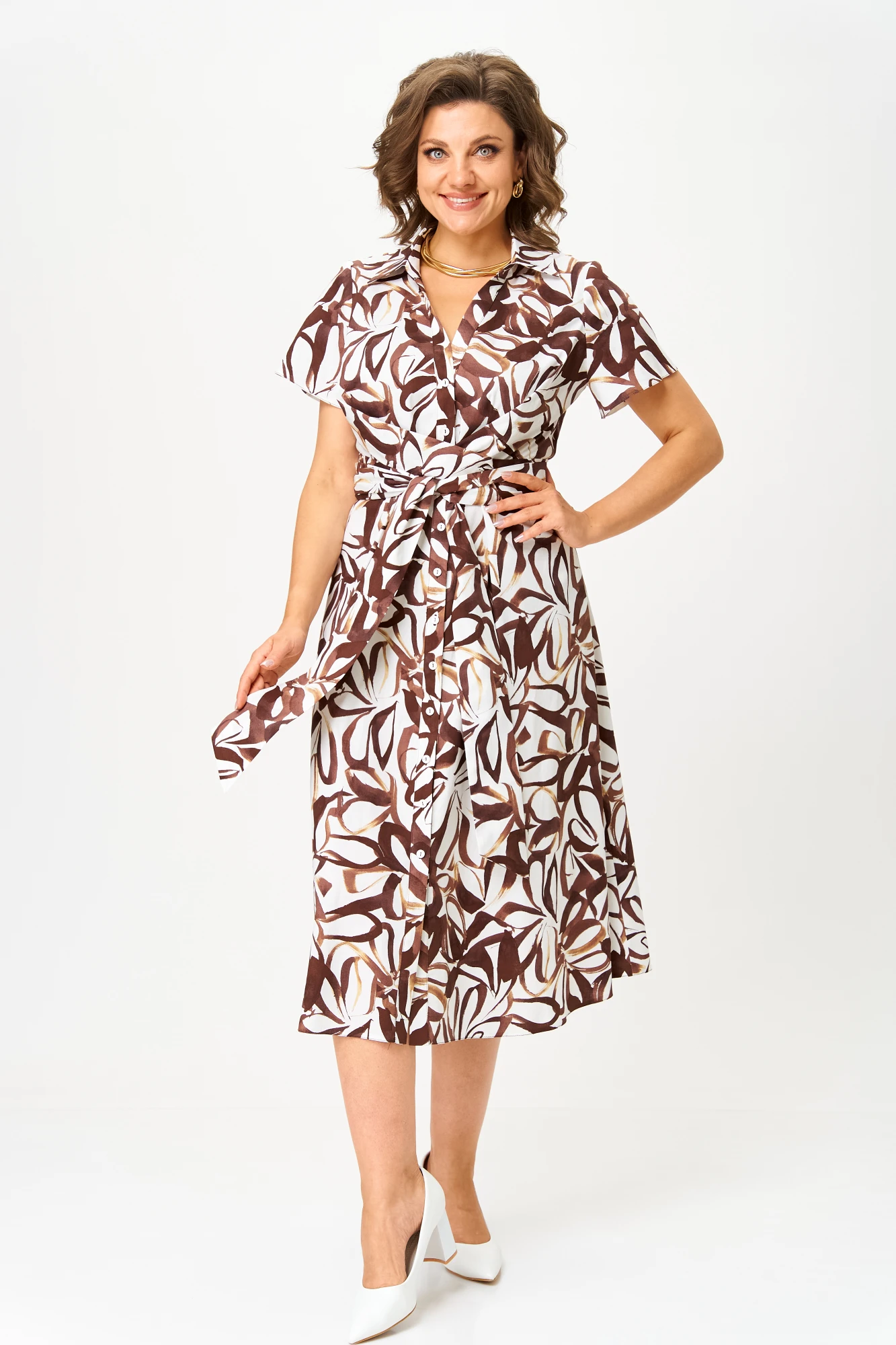 Платье полуприлегающего силуэта с широкой юбкой, отрезное по линии талии, по лифу цельновыкроенный пояс. Горловина «V» образная, застежка на петли пуговицы.
