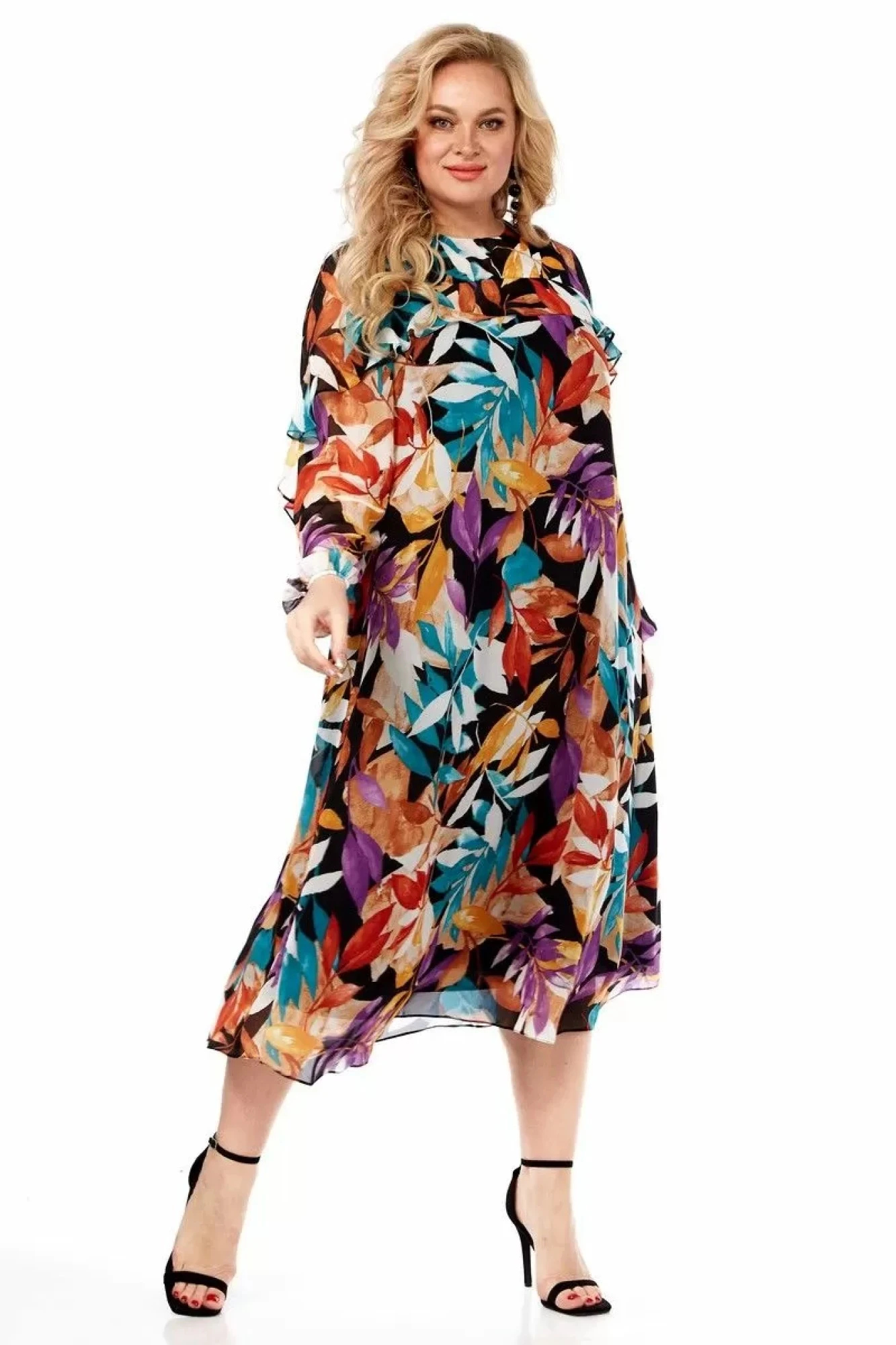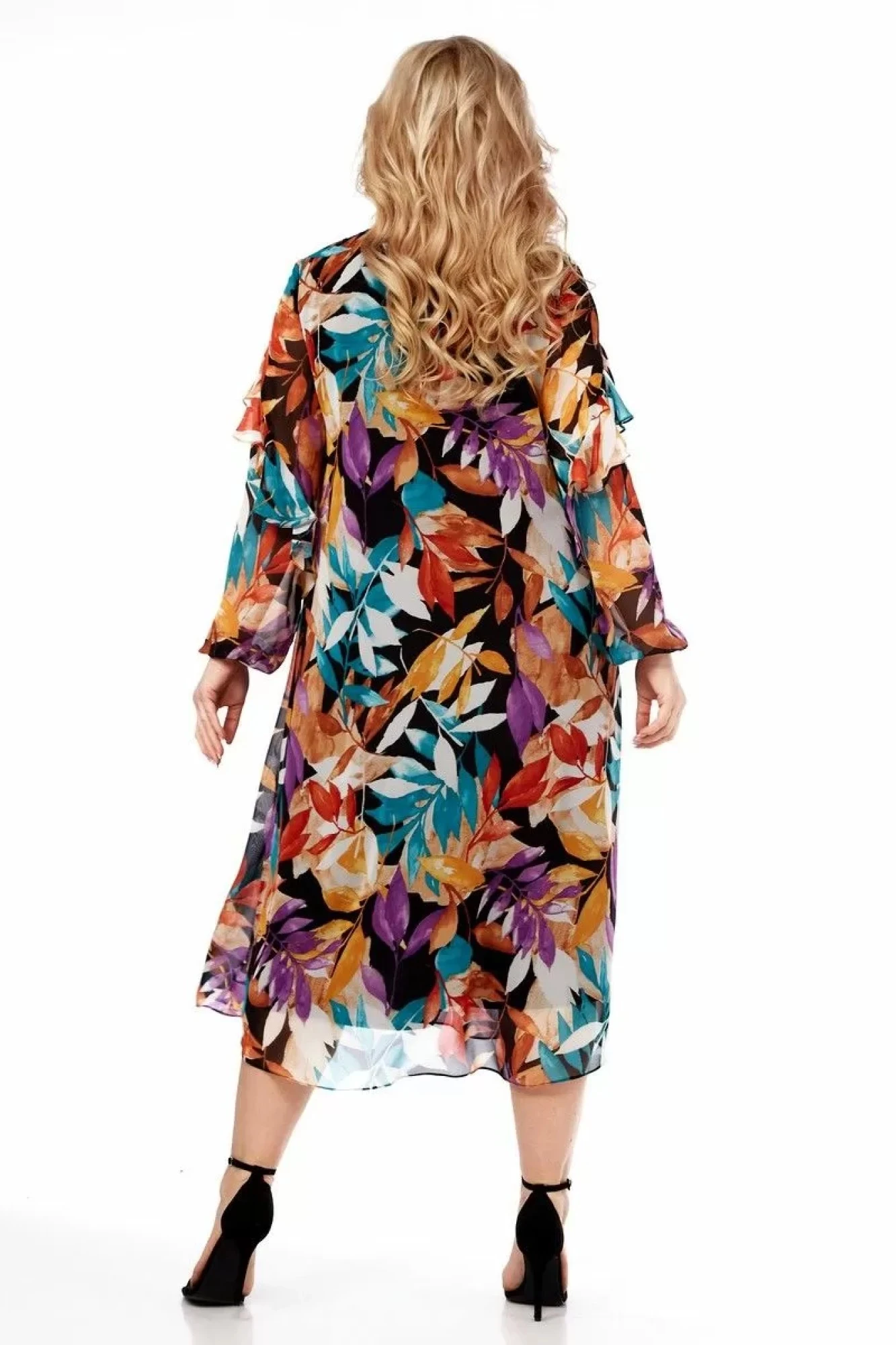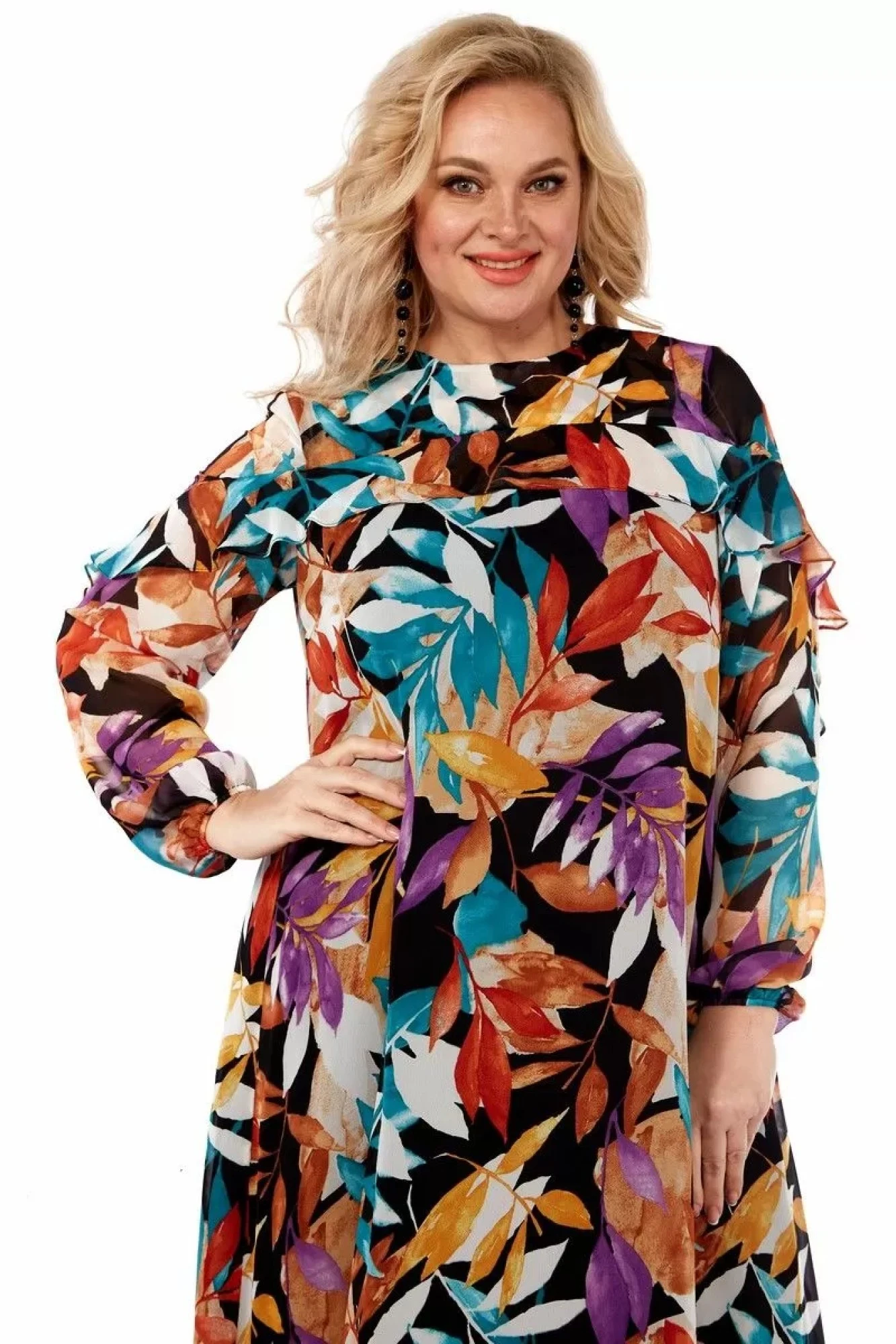 По полочке обработана кокетка, в которую вставлен притачной волан, переходящий на рукав. Спинка цельная. На спинке застежка на петлю и пуговицу. Рукав втачной одношовный, низ рукава на резинке. Платье на текстильной вискозной подкладке.