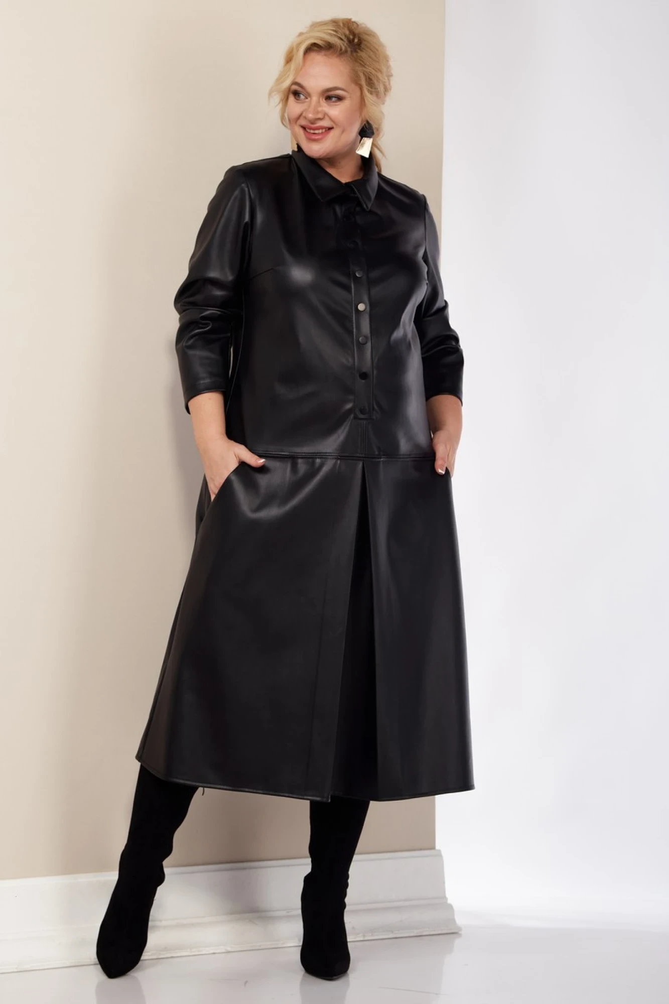 Платье выполнено из экокожи высокого качества, изнанка в ткани - замш. Ткань тянется. Кнопки на платье металлические.