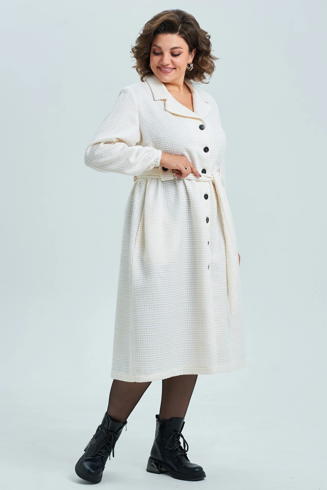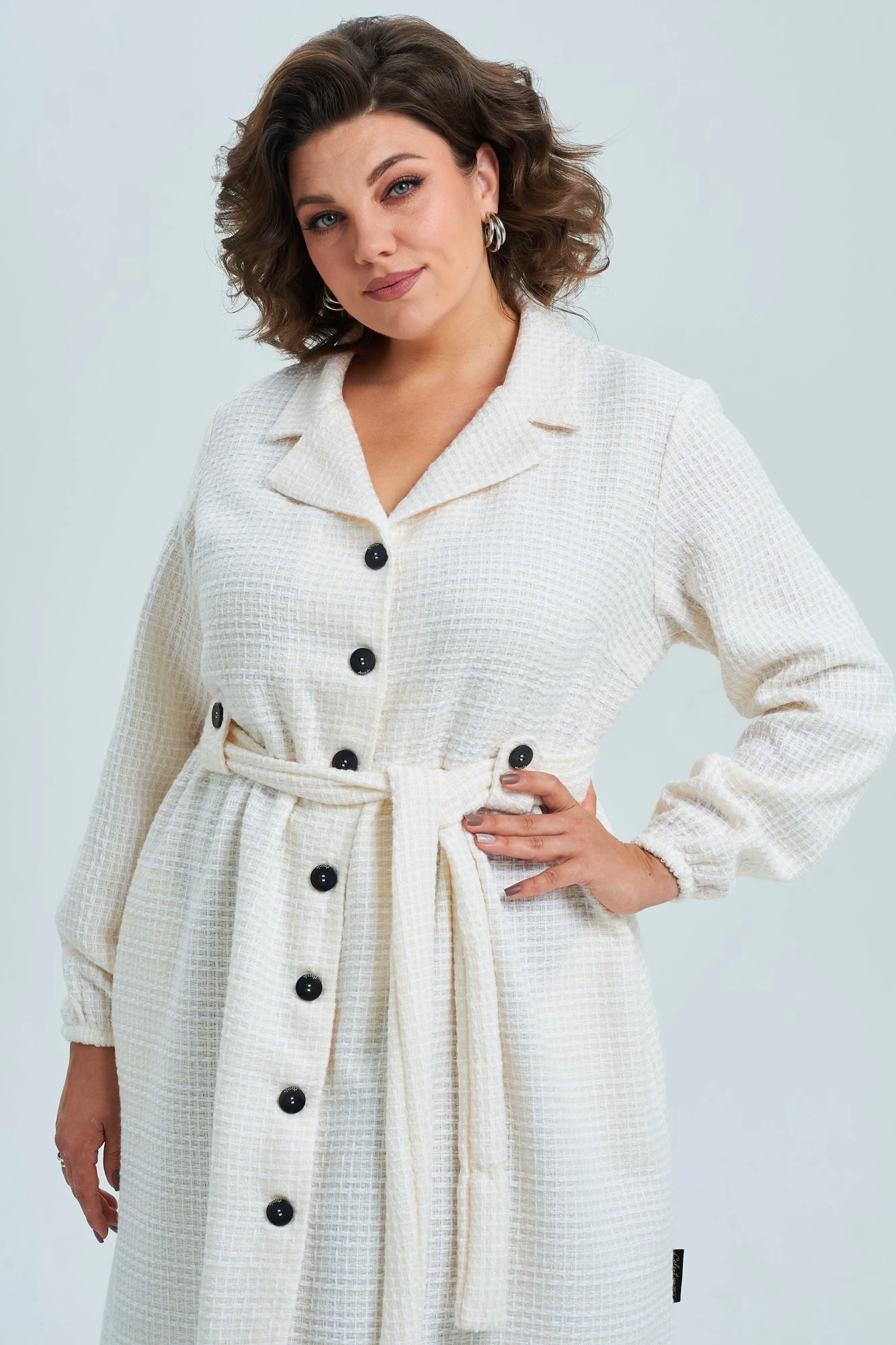 Длина изделия по спинке 117 см., длина рукава 62 см. В комплекте пояс из основной ткани.