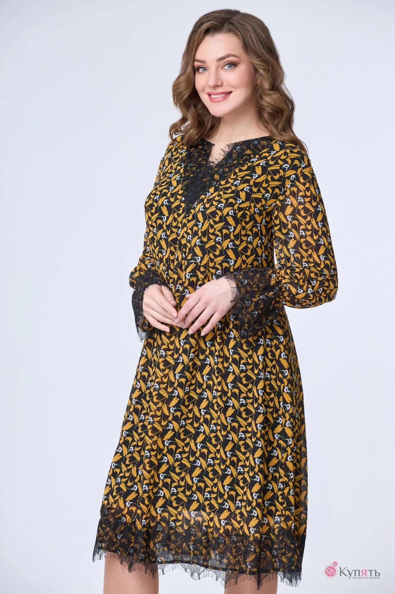 Платье Дали 4210 чёрное с горчицей