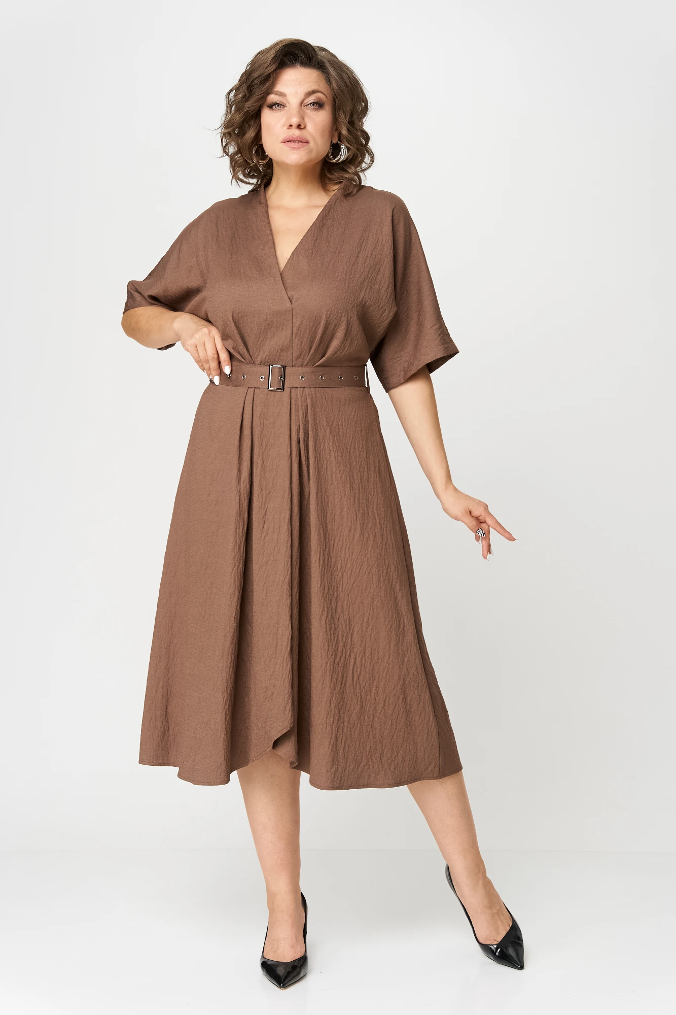 Модное, красивое и элегантное платье прямого силуэта идеально садится на любой тип фигуры и стройнит ее . Стильное платье, длиной «миди». Особое внимание привлекает стилизованный перед ,имитирующий потайную бортовую застежку, которая является декоративным элементом. Смежные складки переда придают изделию изюминку и визуально скрывают недостатки. Смотрится очень выигрышно V-образная горловина с цельнокроеной стойкой. Это очень женственный вырез, с ровными линиями кроя. Крой рукава «кимоно» делает платье очень привлекательным, рукав свободный. Платье отрезное по линии талии, частично на эластичной резинке со стороны спинки. А- силуэт подчеркивается съемным поясом на пряжке. По центру переда юбки для придания шарма выполнен разрез-складка. Он придает образу шик и игривость. Платье идеально садится на любой тип фигуры и стройнит ее .