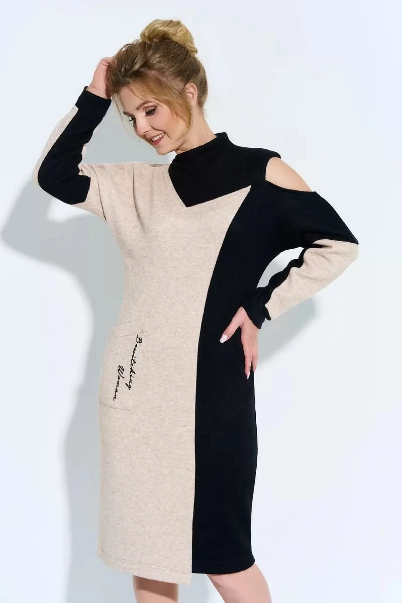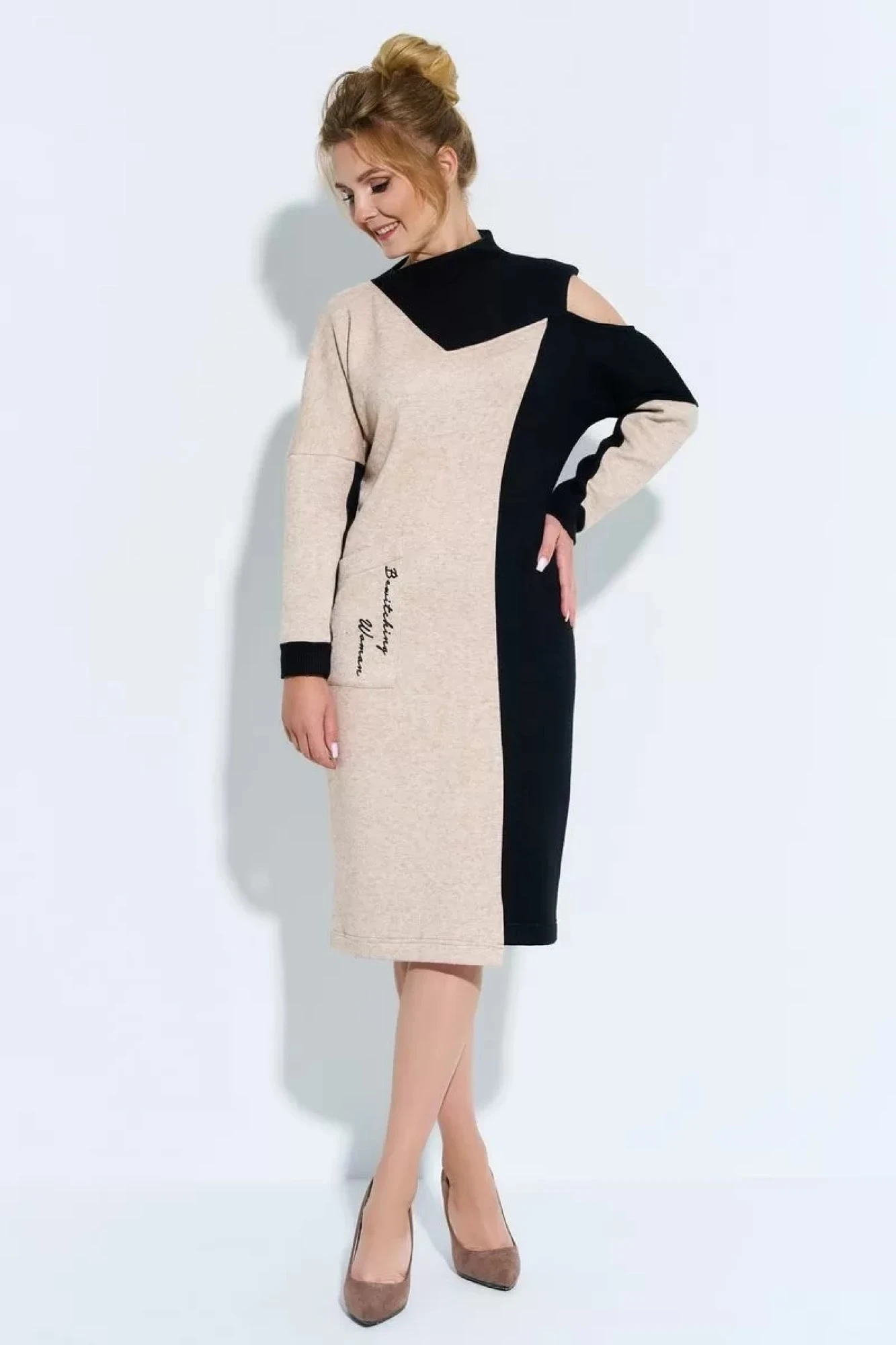 Платье Euromoda 480 черный+бежевый