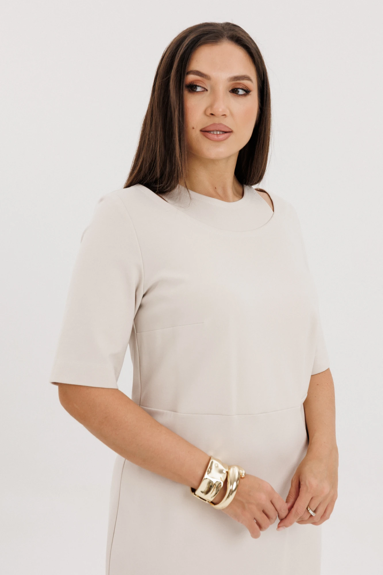 52Полуприлегающий силуэт, втачной покрой, длинна - миди, рукав укороченный.