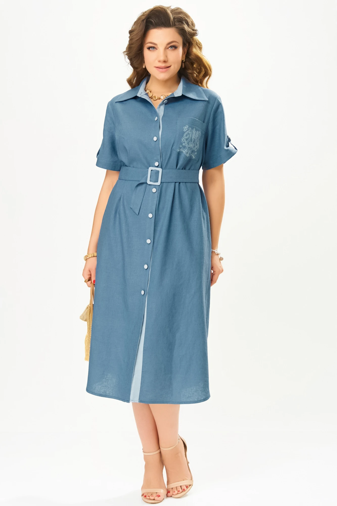 58Созданное из льняной ткани с добавлением вискозы, оно дарит ощущение легкости и свежести, а его прямой силуэт подчеркивает естественную красоту фигуры. Съемный пояс позволяет варьировать образ, добавляя акцент на талии или создавая расслабленный силуэт.