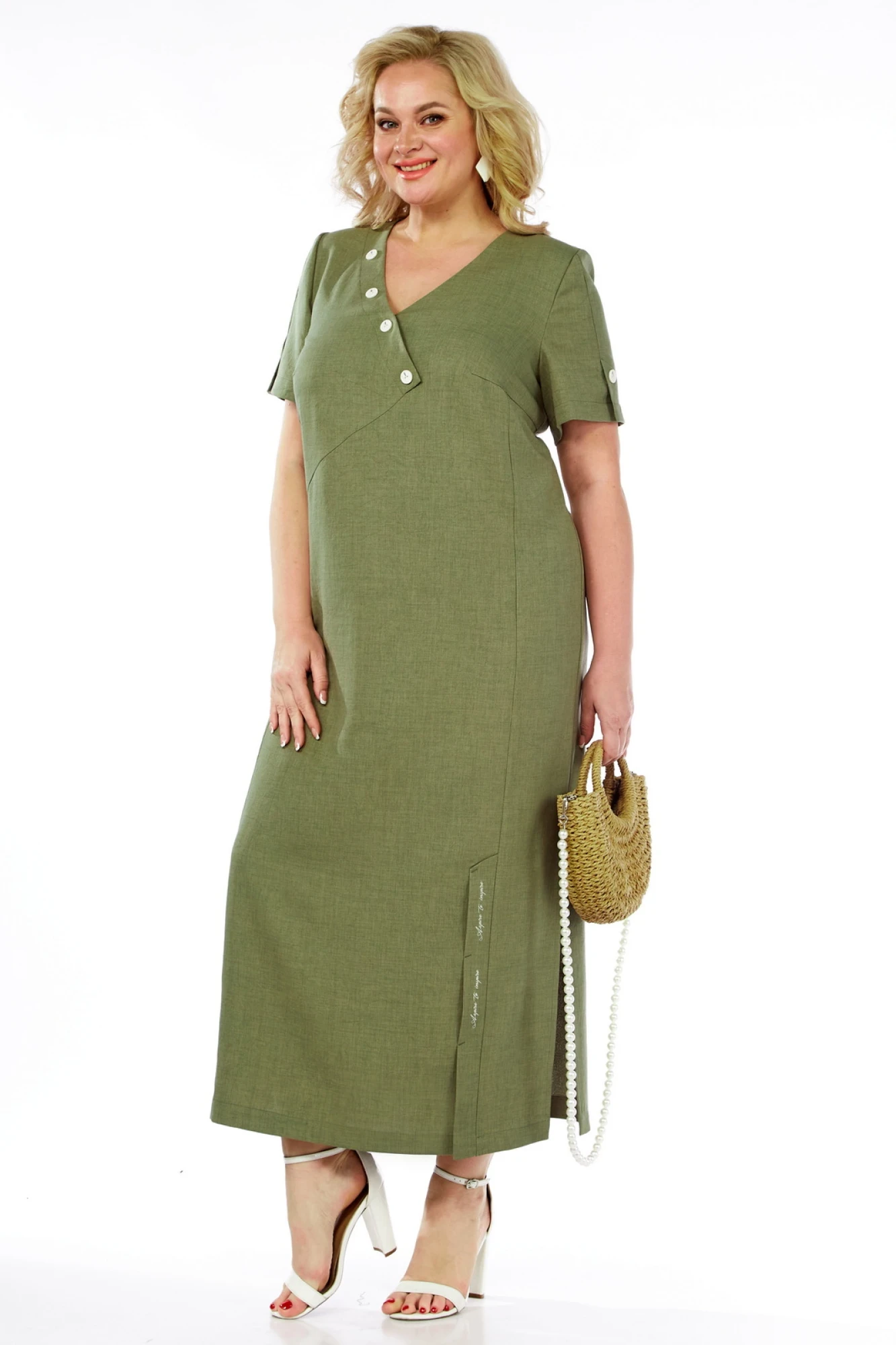 56,58Длина платья по спинке – 130 см, рукава – 25 см.