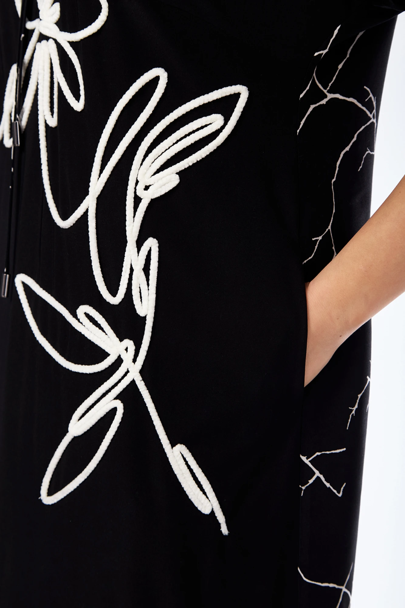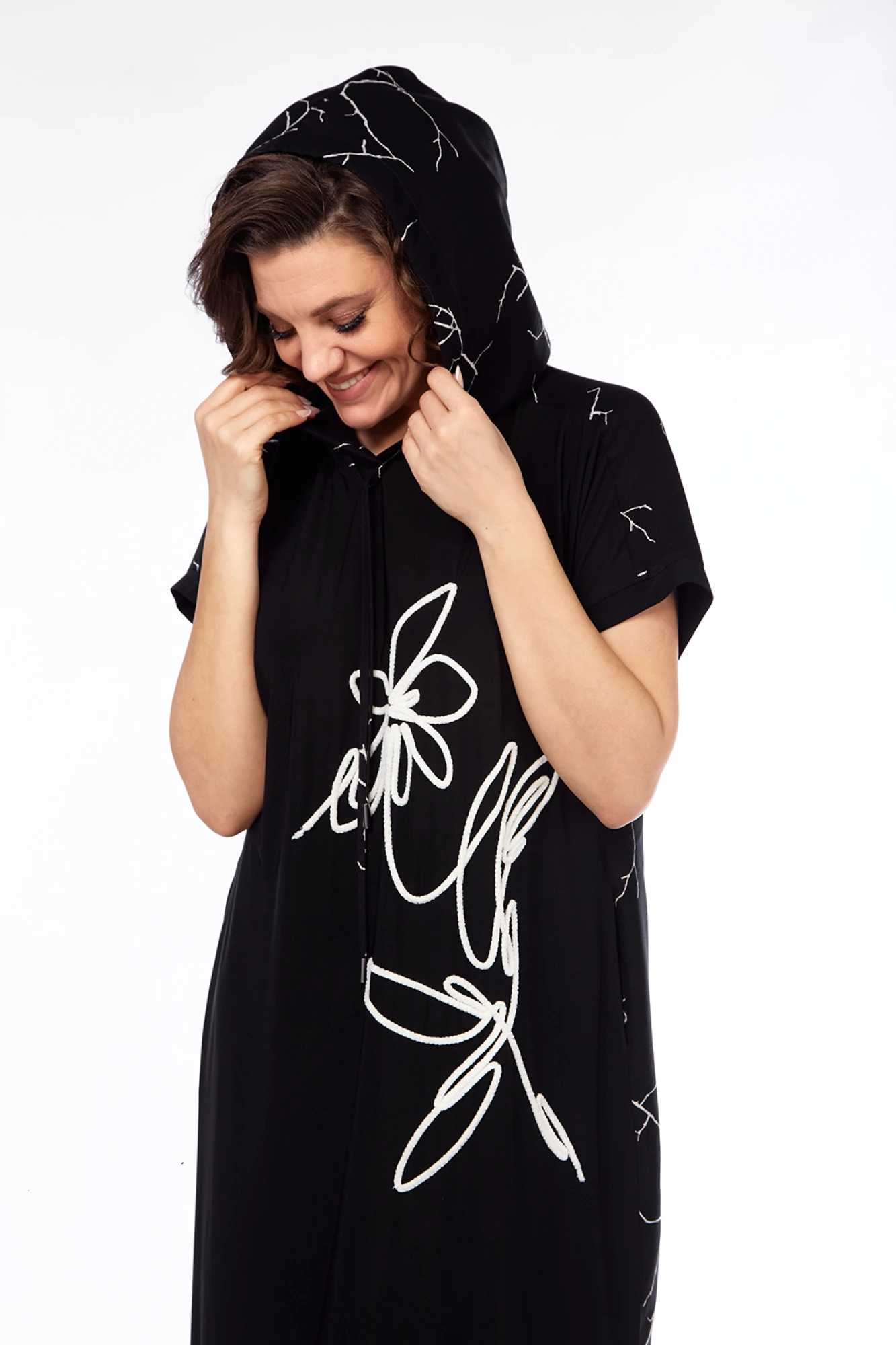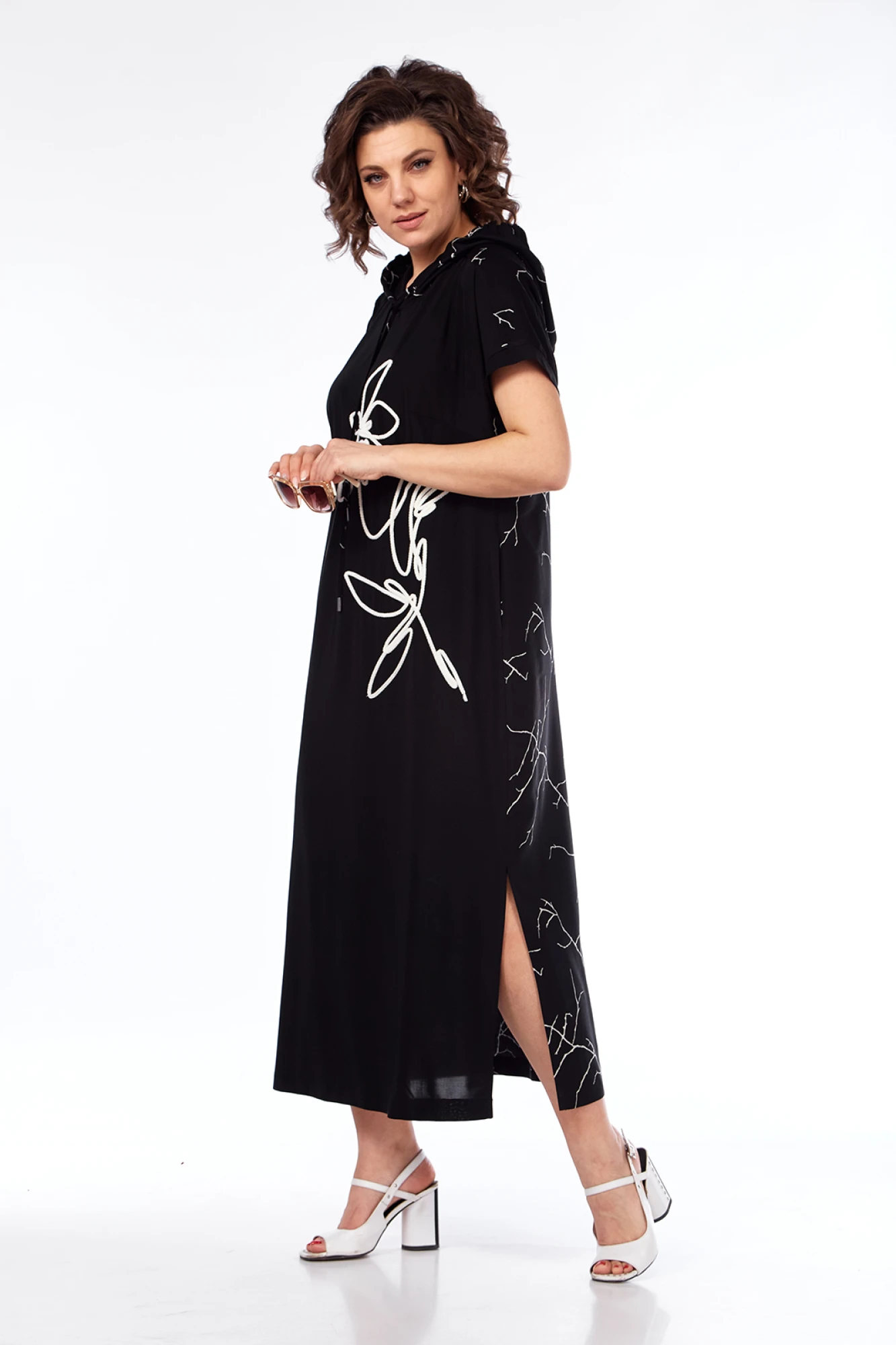 Длина платья по спинке — 128 см, длина плеча — 30 см.