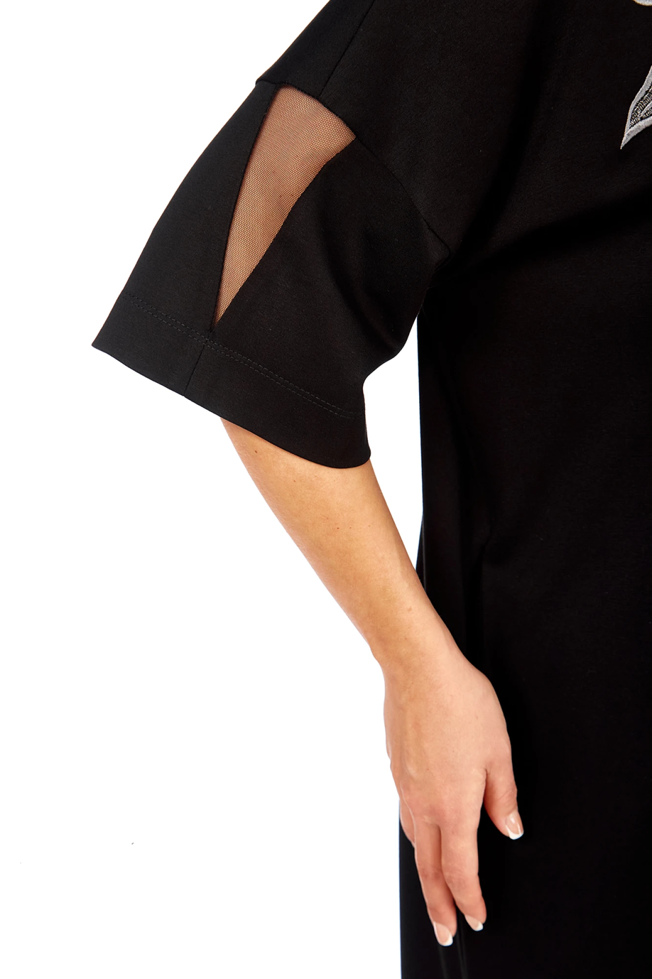 Длина платья по спинке — 106 см, длина плеча + рукав — (50-51 см).