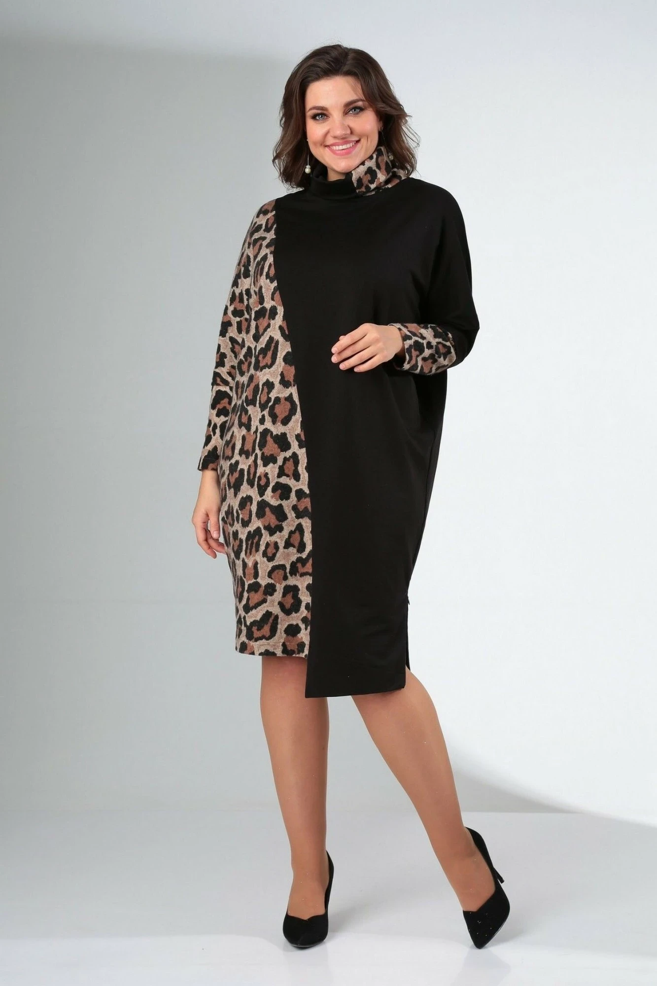 Платье Ладис Лайн 1422 бежевый леопард + черный