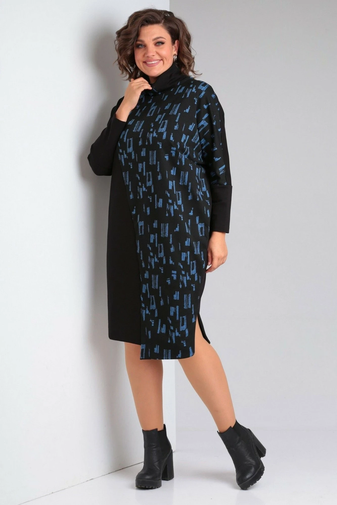 52,54,56,58,60Горловина слегка расширена, воротник хомут. Рукав летучая мышь с отрезной нижней частью. Низ платья фигурный. Спинка со средним швом. В боковом шве снизу для удобства вставлена потайная молния