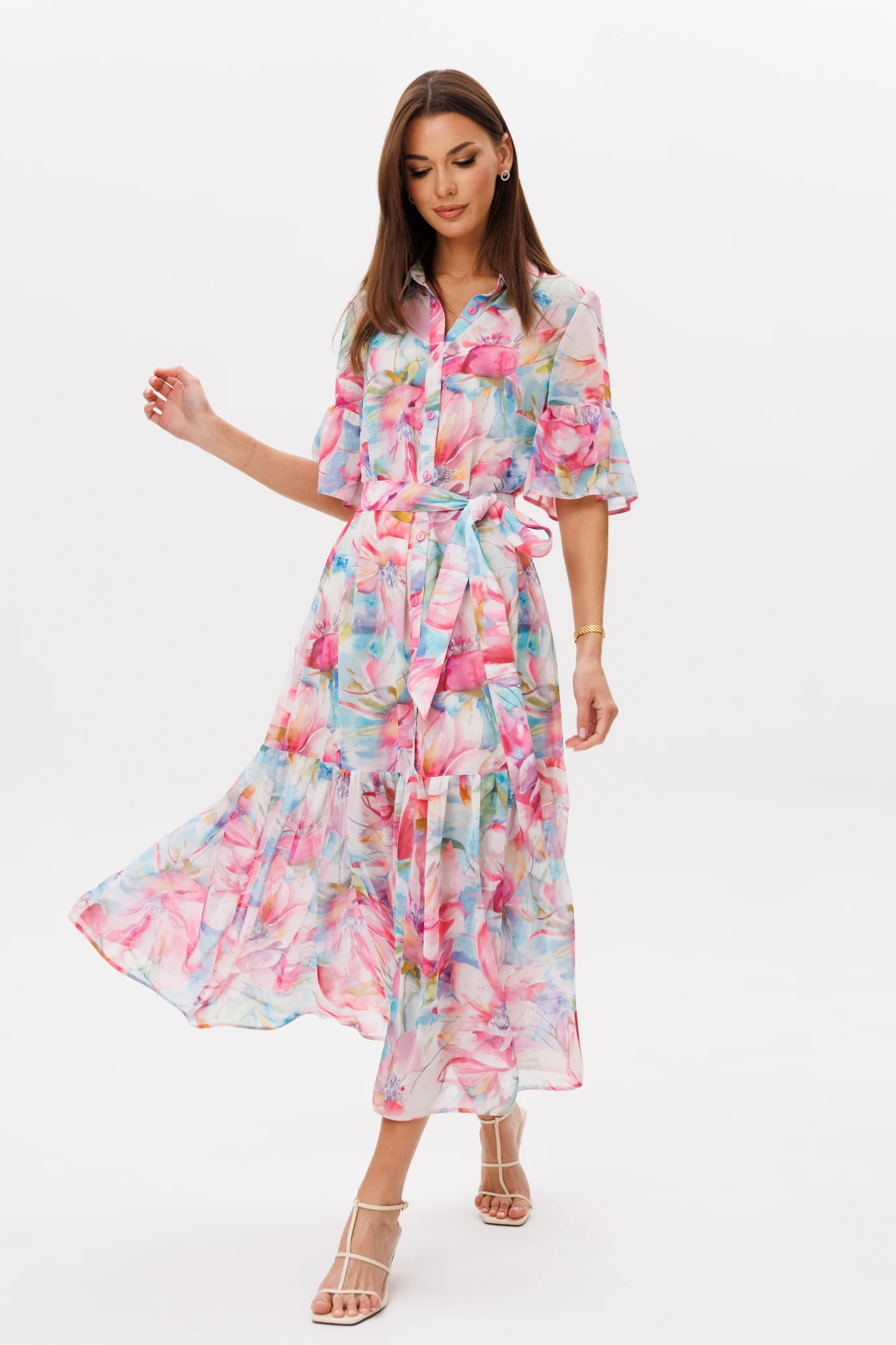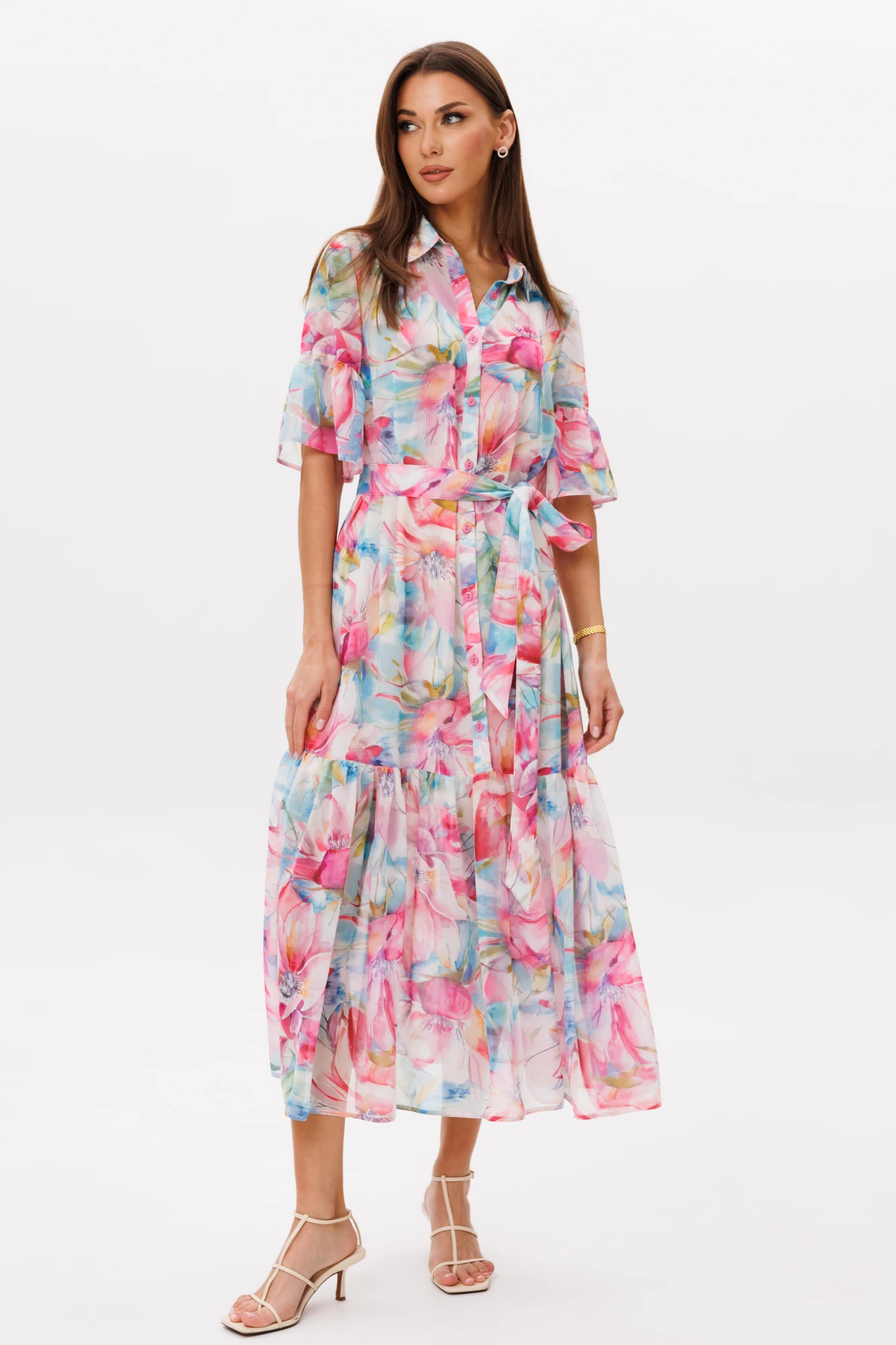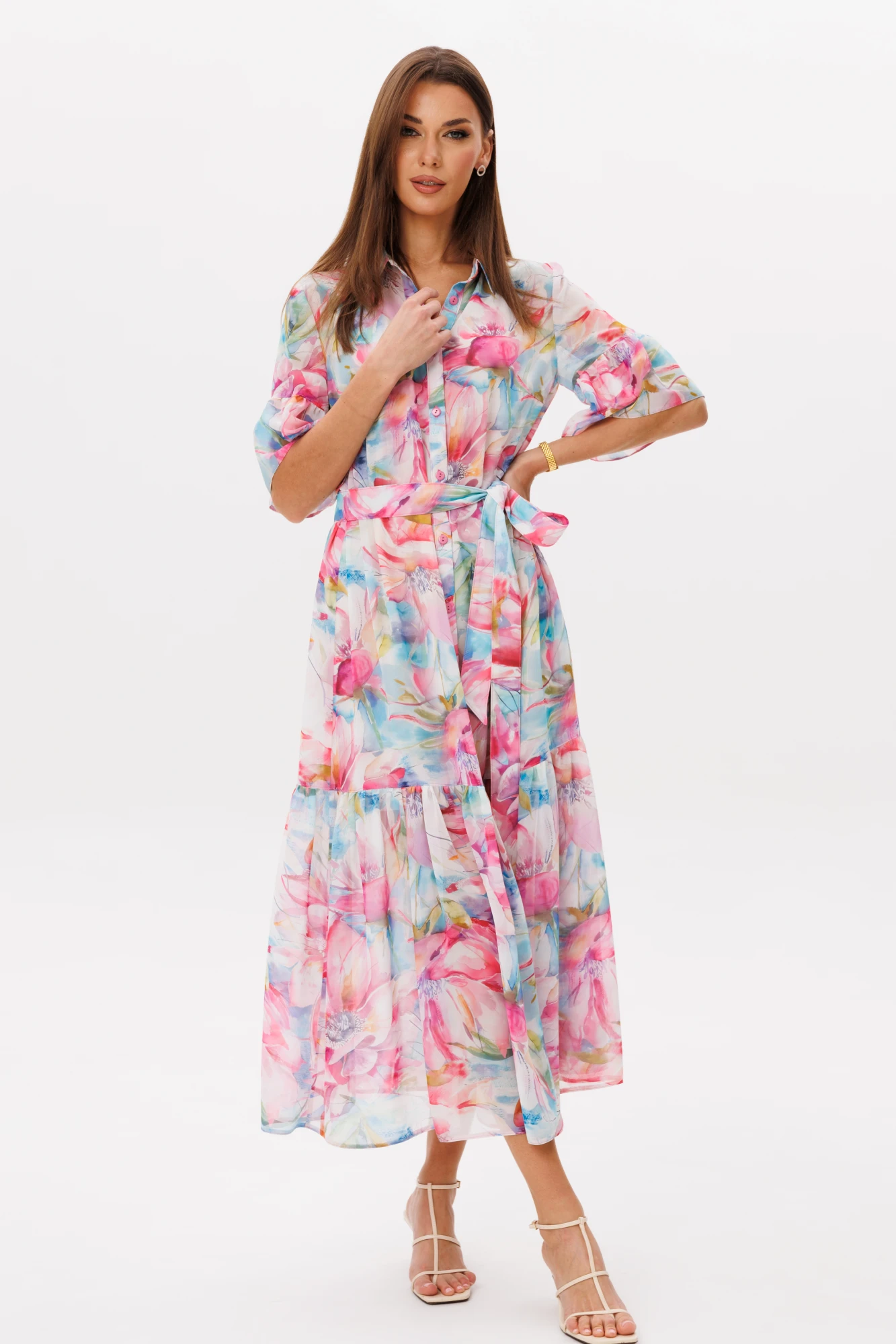 Платье Ларс Стиль 1106 Розово-бирюзово-молочный