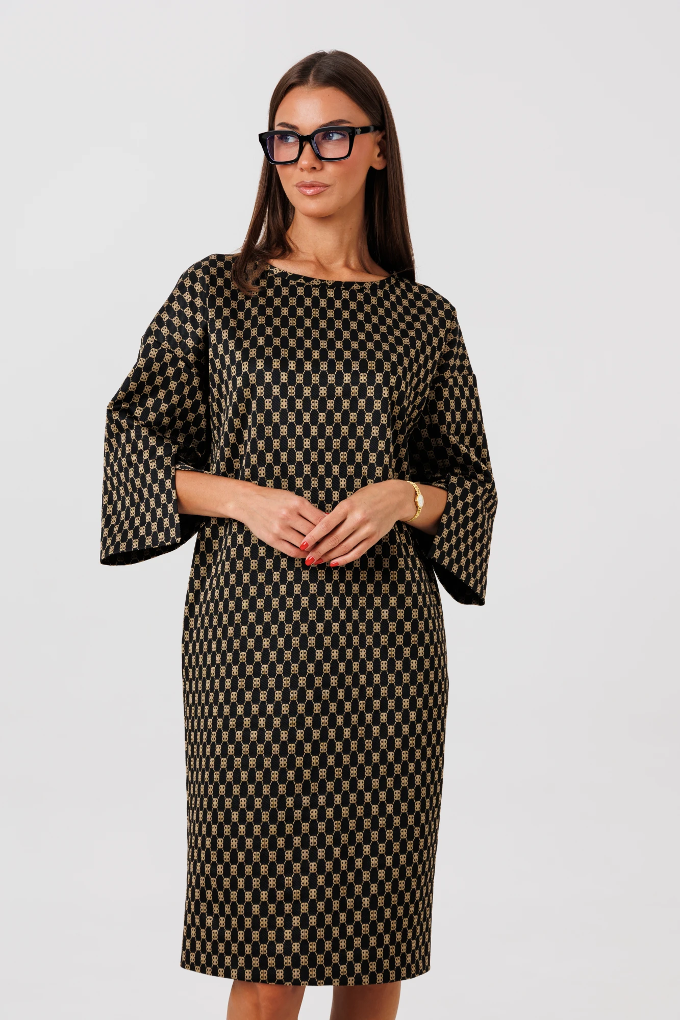 Платье Ларс Стиль 1127 черно-золотой_принт